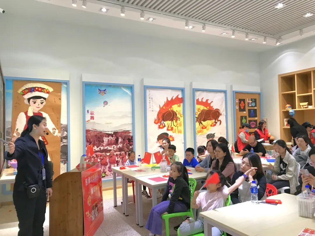 大理州博物館講解員不僅為親子家庭講解了中秋節(jié)、國慶節(jié)的有關(guān)知識、民俗,還與孩子們一起唱歌、猜燈謎、做手工。在《歌唱祖國》的悠揚(yáng)旋律中,家長和孩子們相互協(xié)作,完成了“小小航天器”手工作品。這次手工活動將繪畫、剪紙和折紙相結(jié)合,更好地為小朋友們提供了一個自由發(fā)揮想象力的空間,鍛煉了小朋友們的動手能力。