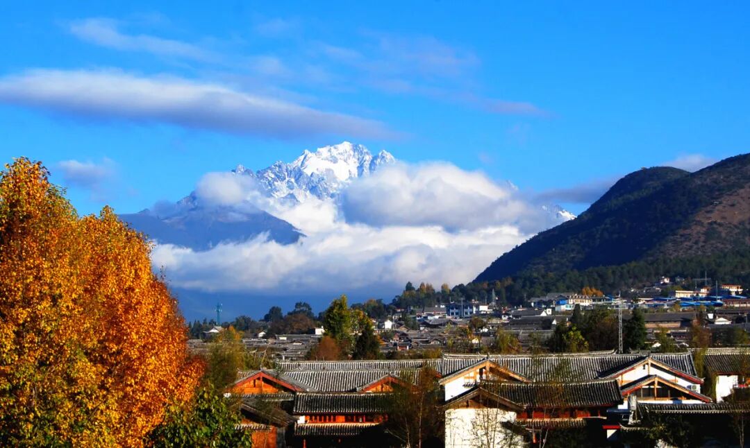 玉龍雪山與麗江古城。(麗江融媒記者 趙慶祖 攝)