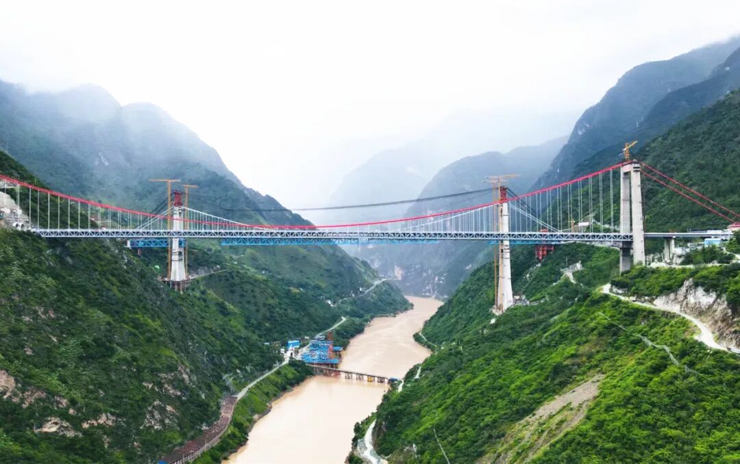 天塹變通途。圖為跨金沙江高速公路大橋和鐵路大橋。(迪慶日報(bào)社供圖)