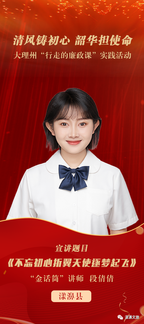 11月28日,由大理州開展“行走的廉政課”領(lǐng)導(dǎo)小組辦公室主辦的“大理州‘行走的廉政課’精品課及‘金話筒’講師評(píng)選活動(dòng)”決賽在大理州群眾藝術(shù)館完賽,漾濞縣文化和旅游局段倩倩獲“黨性初心課”一等獎(jiǎng)。