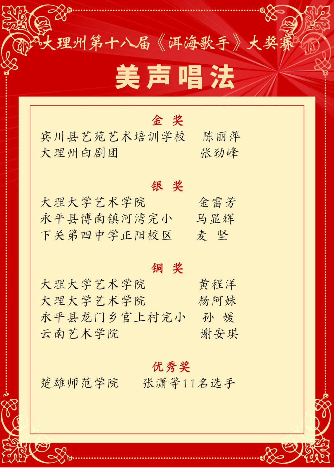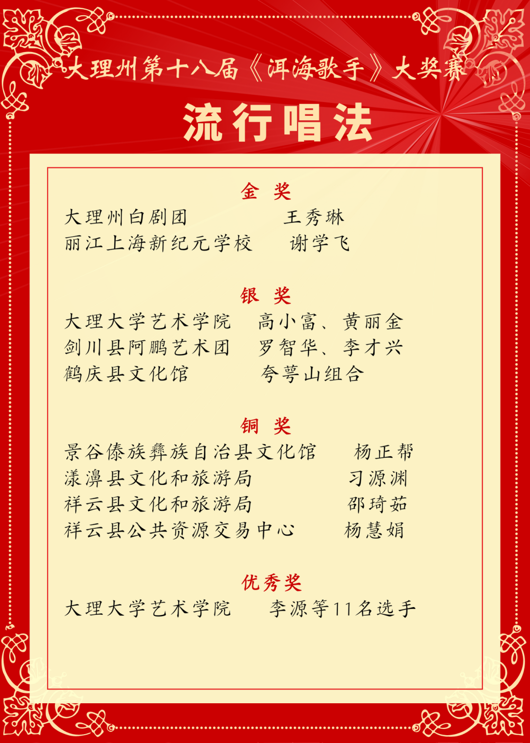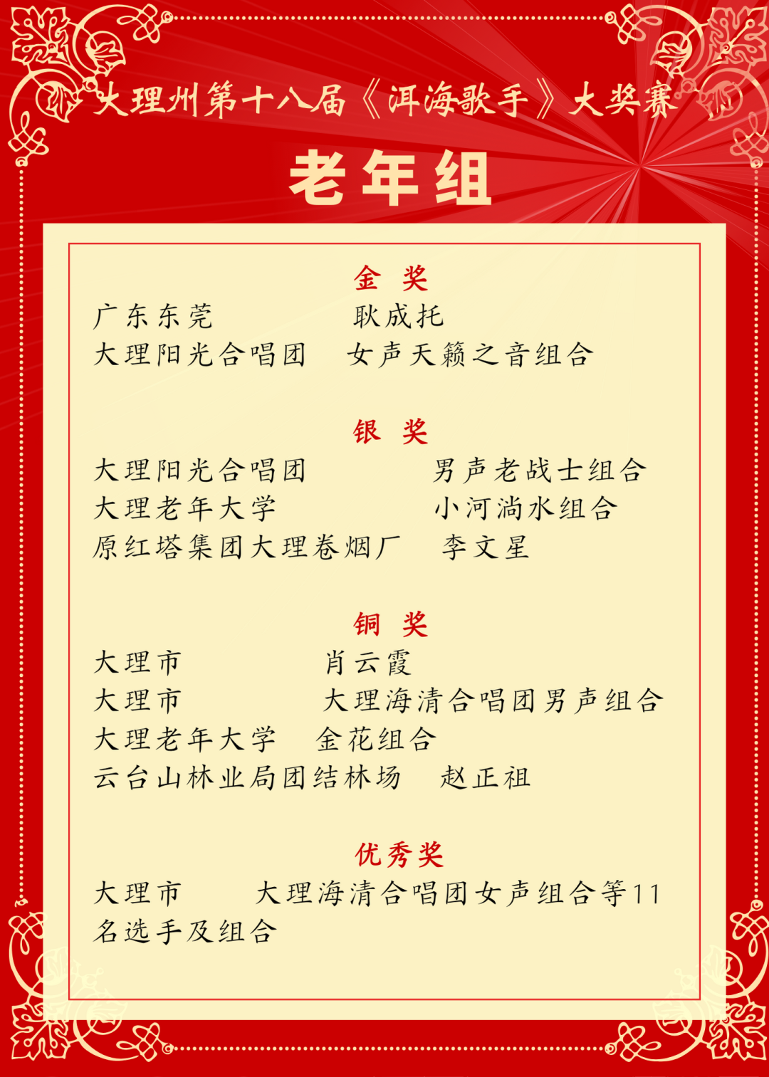 放歌蒼洱,謳歌新時(shí)代。大理州第十八屆《洱海歌手》大獎賽從11月初的網(wǎng)絡(luò)海選到近日的決賽現(xiàn)場PK,經(jīng)過一個(gè)多月的精彩角逐,六個(gè)組別共決出120名選手(組合)同臺競技,各組別金銀銅獎花落誰家?