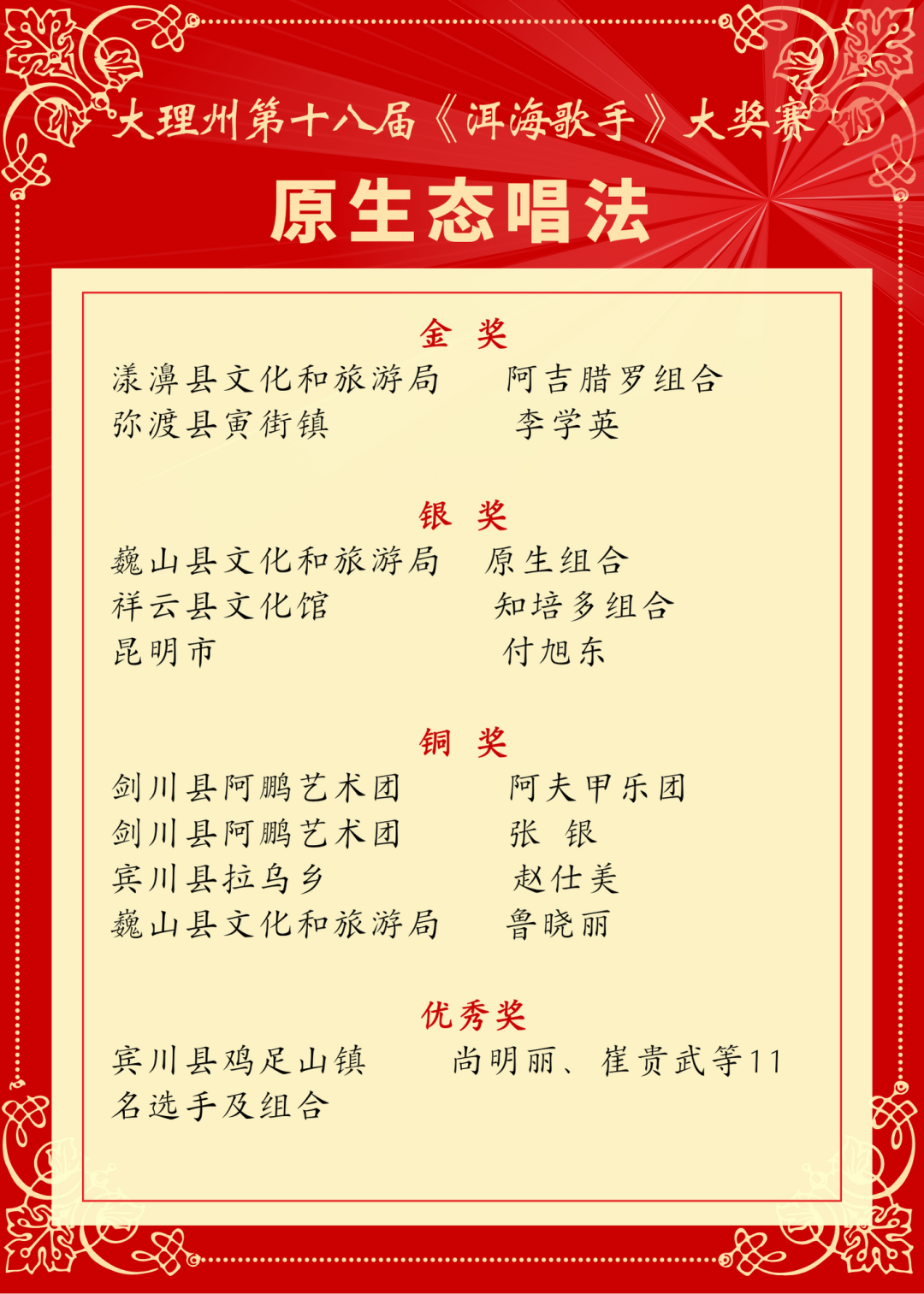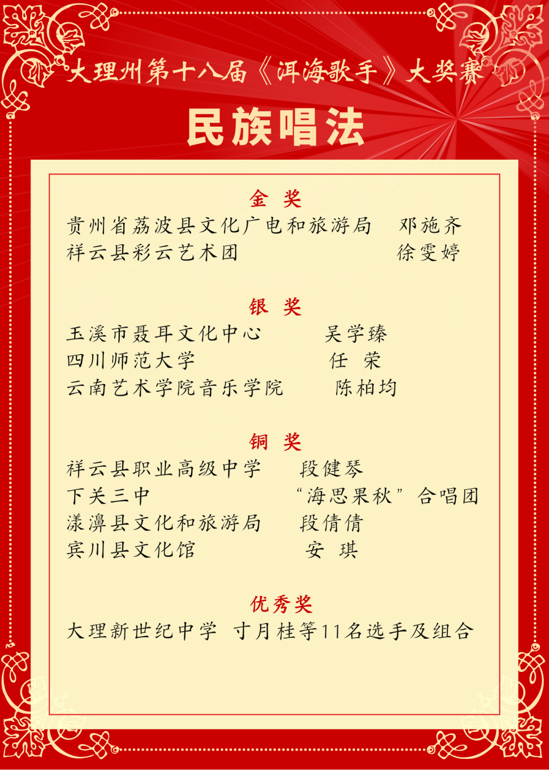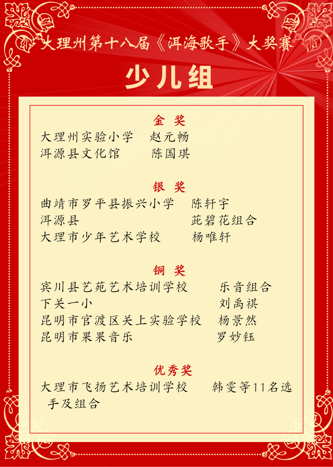 放歌蒼洱,謳歌新時(shí)代。大理州第十八屆《洱海歌手》大獎賽從11月初的網(wǎng)絡(luò)海選到近日的決賽現(xiàn)場PK,經(jīng)過一個(gè)多月的精彩角逐,六個(gè)組別共決出120名選手(組合)同臺競技,各組別金銀銅獎花落誰家?