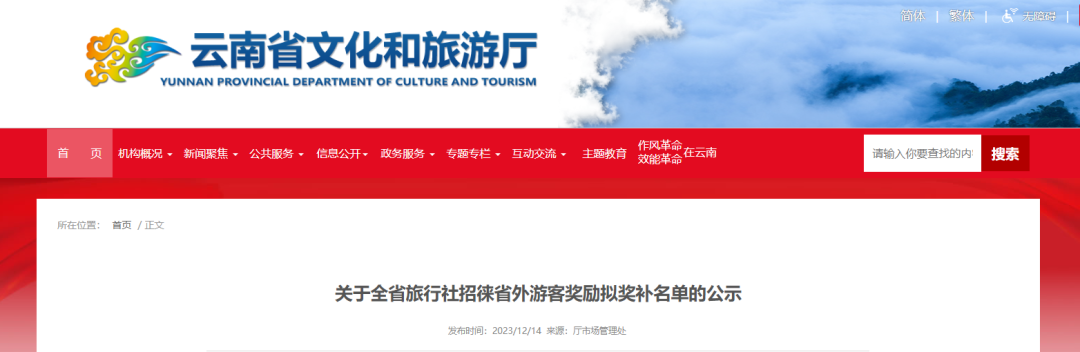 云南省文化和旅游廳2023年12月14日