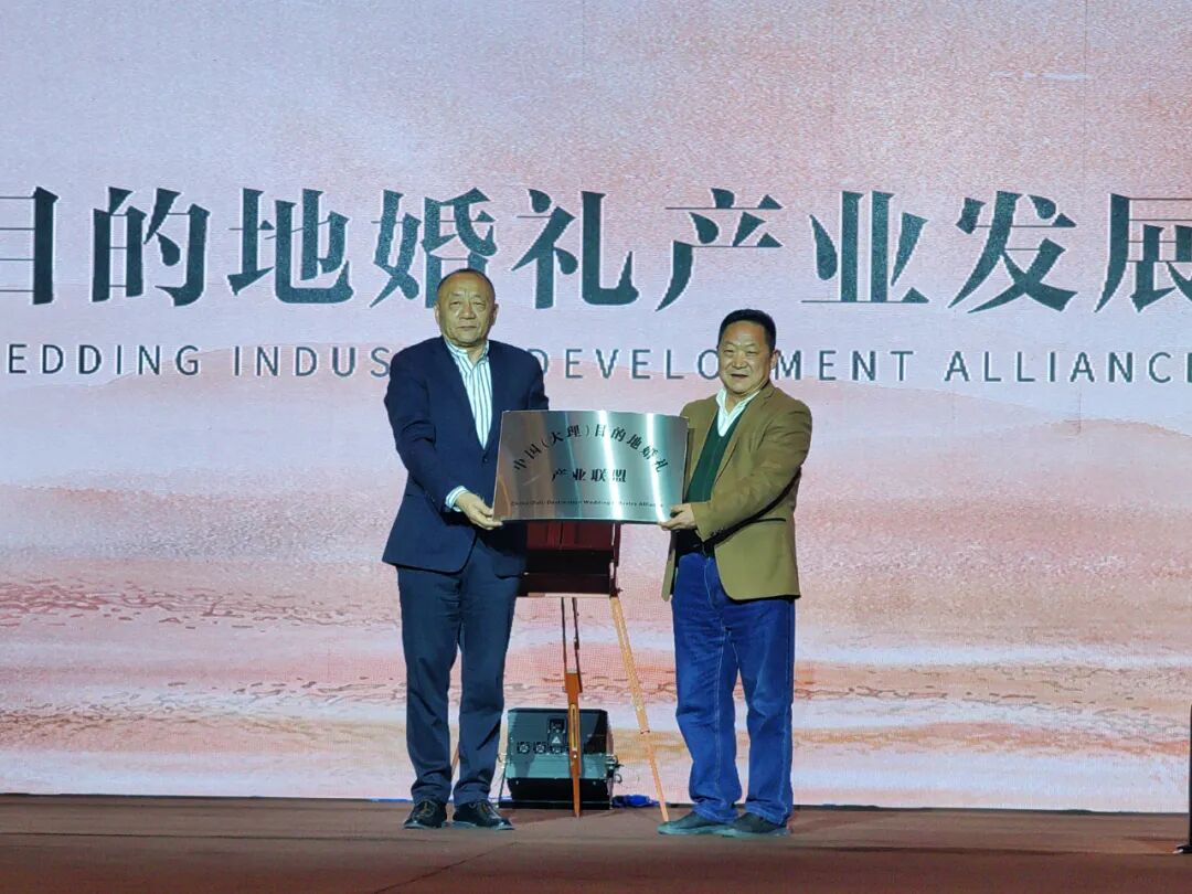 與會領(lǐng)導(dǎo)為中國(大理)目的地婚禮產(chǎn)業(yè)聯(lián)盟揭牌和授牌。中國(大理)目的地婚禮產(chǎn)業(yè)聯(lián)盟聯(lián)合了國內(nèi)知名文旅投資機構(gòu)、主題商業(yè)地產(chǎn)運營商行業(yè)頭部企業(yè)、產(chǎn)業(yè)智庫單位、行業(yè)知名自媒體等結(jié)成合作組織式的產(chǎn)業(yè)聯(lián)盟。通過聯(lián)盟的建立,搭建以大理為核心,面向全國的目的地婚禮產(chǎn)業(yè)交流合作平臺,不斷為大理目的地婚禮產(chǎn)業(yè)的高質(zhì)量發(fā)展增添新動能。