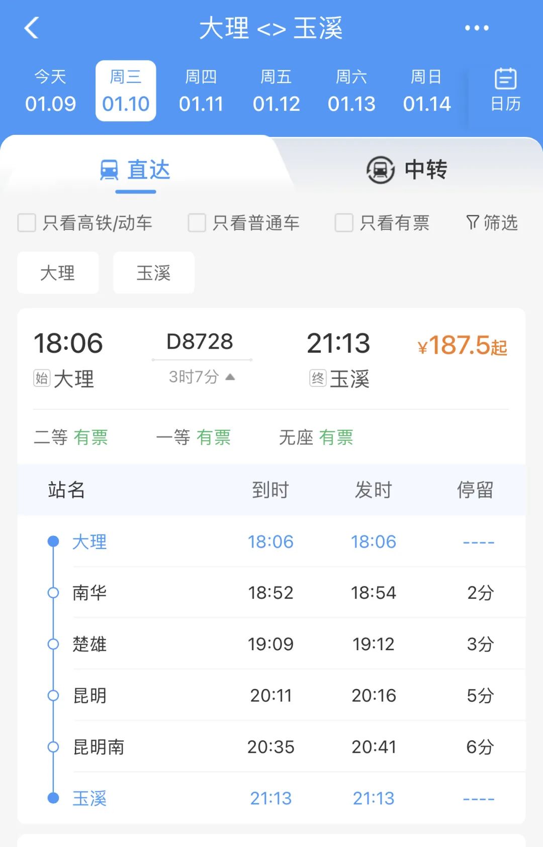 18點零6分從大理站出發(fā)