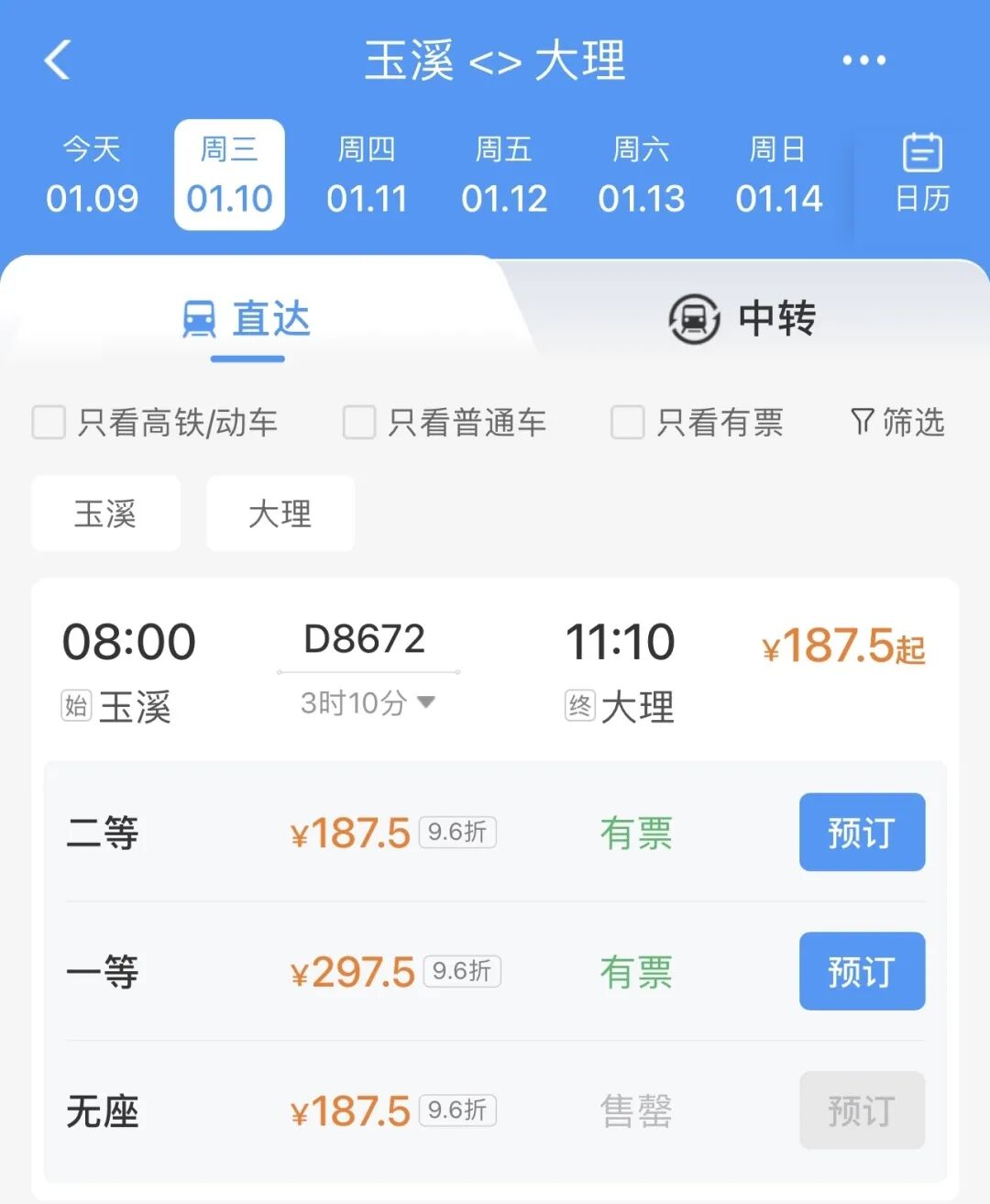 二等座(無座)187.5元
