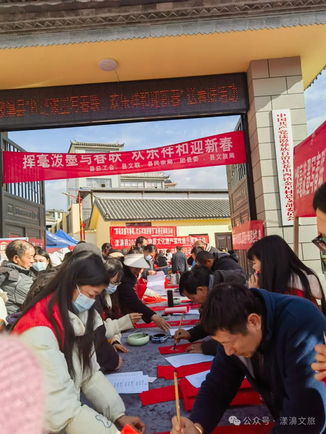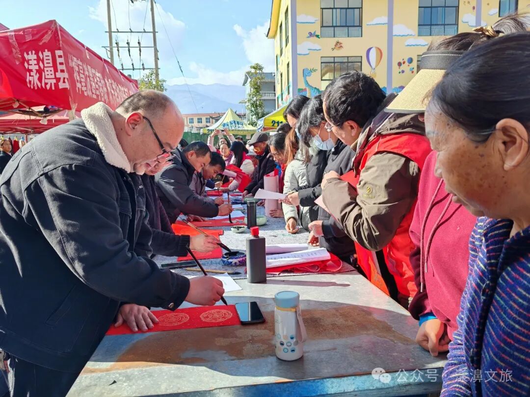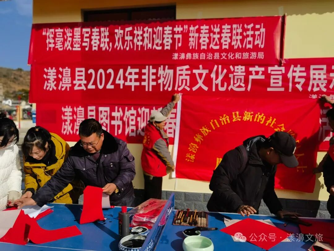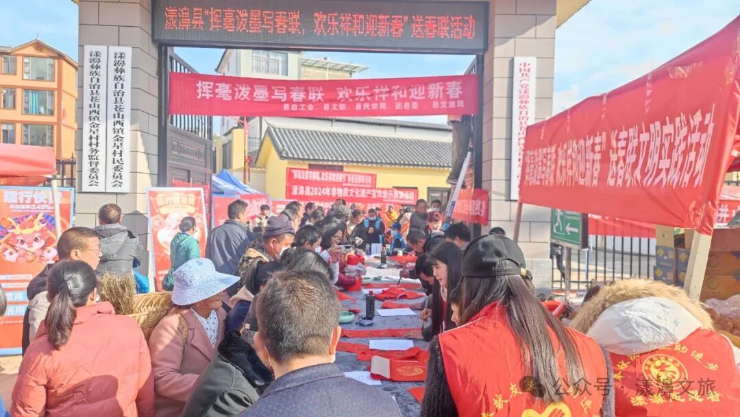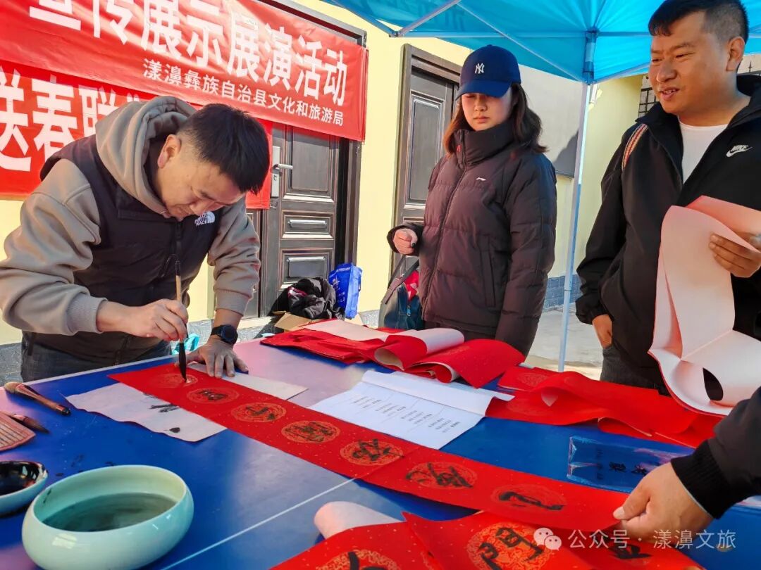 在2024年春節(jié)即將來臨之際,為營造濃厚的節(jié)日氛圍,讓全縣人民度過一個(gè)歡樂、祥和、喜慶的新春佳節(jié),由中共漾濞彝族自治縣委、漾濞彝族自治縣人民政府主辦,漾濞彝族自治縣文化和旅游局等單位承辦的“揮毫潑墨寫春聯(lián),歡樂祥和迎新春”送春聯(lián)活動(dòng)和非物質(zhì)文化遺產(chǎn)宣傳活動(dòng)在漾濞縣金星村街場(chǎng)組織開展。