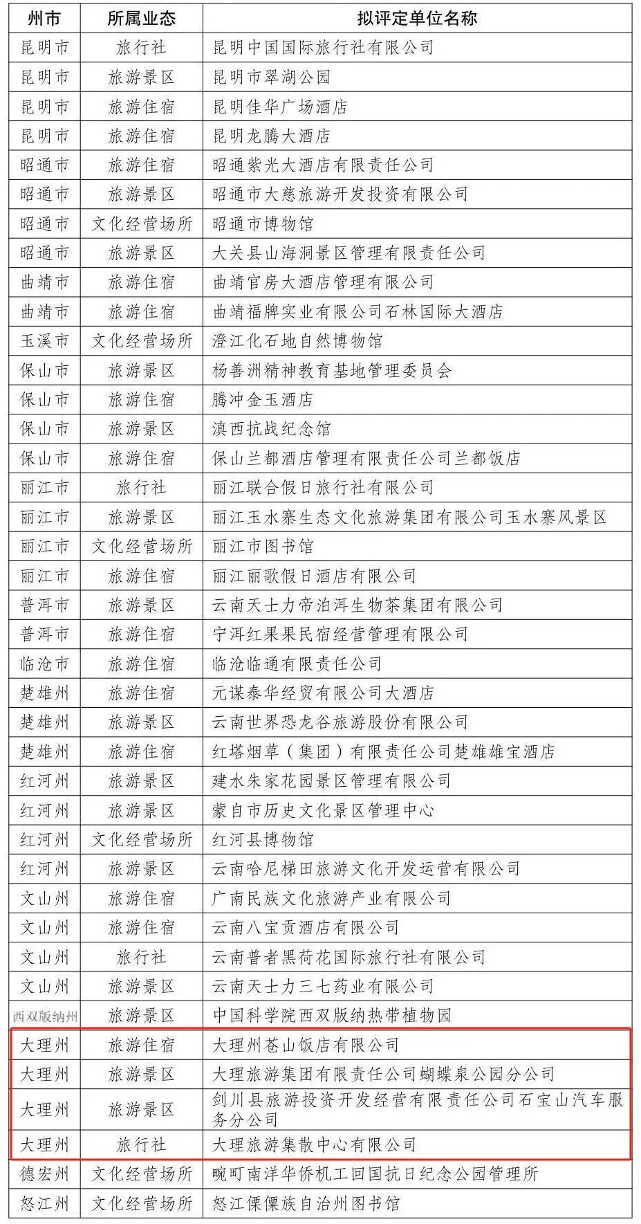 云南省第二批省級(jí)文明旅游示范單位擬評(píng)定名單