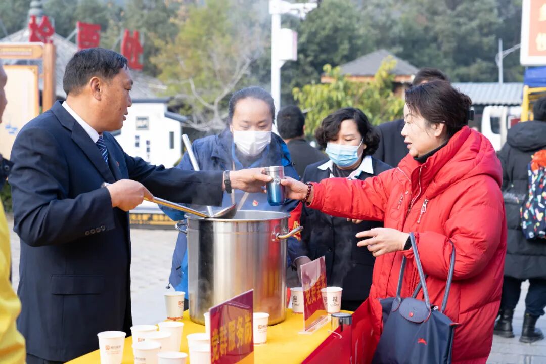 黨員干部們熱情的為廣大游客分發(fā)姜茶,同時(shí)還不斷地囑咐大家天氣多變要及時(shí)添衣物,注意保暖,在一聲聲貼心的提示中,將一杯杯姜茶送到游客的手中。