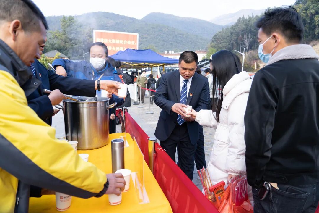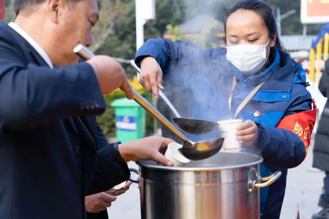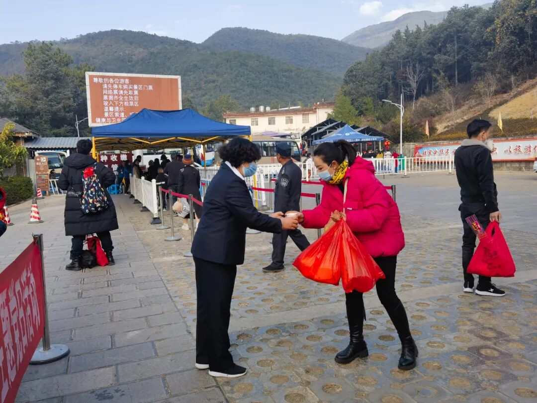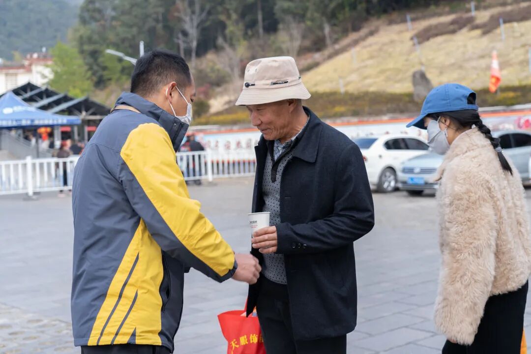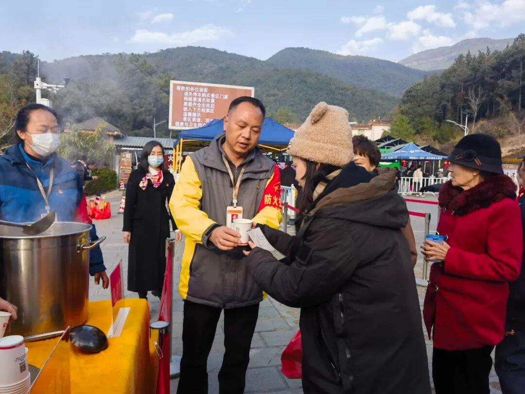 大年初一上午,賓川雞足山旅游投資開發(fā)有限公司黨總支廣大黨員干部輪班上崗,為廣大游客提供免費(fèi)送姜茶服務(wù),用一杯杯熱氣騰騰的姜茶,溫暖游客的旅途。