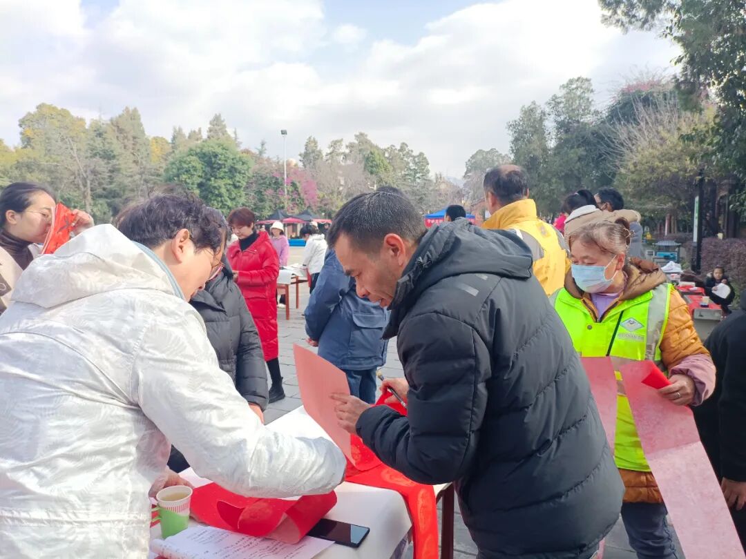 2月5日上午,舉辦了“饗文化,過大年”系列集福送春聯(lián),喜迎中國年活動。圖書館邀請了巍山縣書法美術(shù)家協(xié)會的書法家們在蒙陽廣場圖書館24小時書房前現(xiàn)場免費為群眾寫春聯(lián)、送“?!弊帧H罕娊舆^書法家們遞給他們的一幅幅寓意新春的美好祝福和新一年的愿景的對聯(lián),臉上洋溢著歡樂喜慶的笑容。一些書法愛好家庭和擅長書法的市民也親自同書共寫春聯(lián)福字,把紅紅的春聯(lián)、吉祥的福字和歡樂帶回家,讓今年的春節(jié)更加喜慶,年味更濃。當天共寫福字253個,春聯(lián)309對。