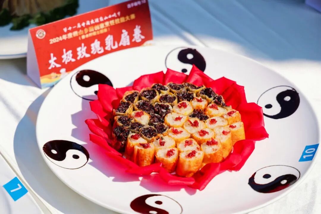 比賽中,不少作品都充滿了創(chuàng)作者的巧思。如太極玫瑰乳扇卷,充滿了濃郁地方特色,并有創(chuàng)新“加持”,當?shù)氐奈毶绞侨珖拇蟮澜堂街?,而玫瑰乳扇作為最具大理地區(qū)特色的食品,承載著本地人濃濃的鄉(xiāng)愁。