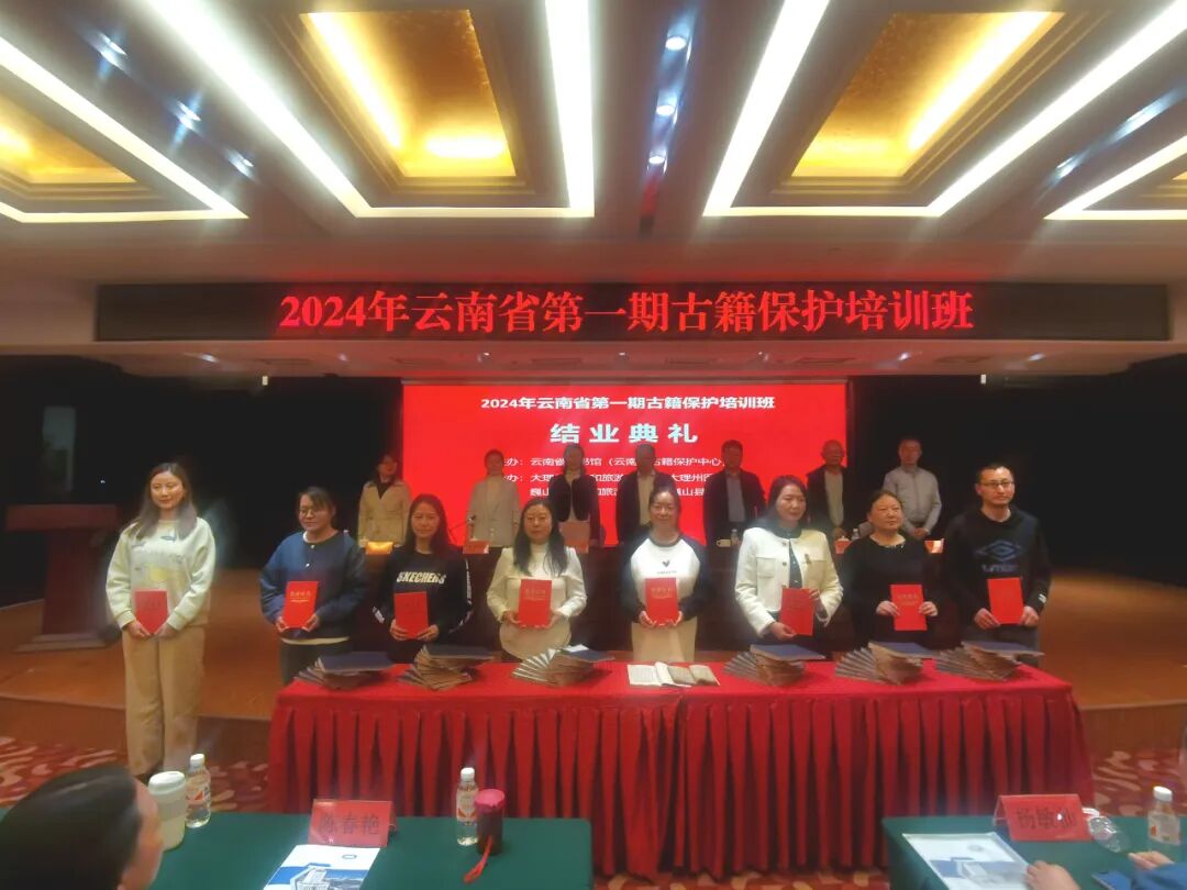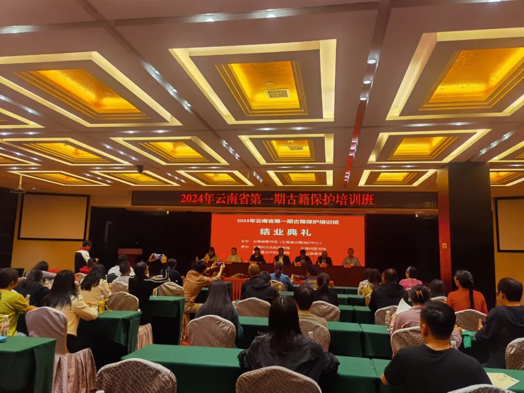 3月16日下午,在雄詔大酒店進(jìn)行了結(jié)業(yè)典禮暨學(xué)員修復(fù)作品展示。云南省圖書館黨委書記、館長(zhǎng)楊和祥,大理州文化和旅游局副局長(zhǎng)田遇霖,巍山縣人民政府副縣長(zhǎng)周嬋媛,導(dǎo)師楊利群,云南省圖書館歷史文獻(xiàn)部主任顏艷萍,大理州圖書館館長(zhǎng)李義出席了典禮。云南省圖書館(云南省古籍保護(hù)中心)的老師和全體學(xué)員參加了典禮。會(huì)議由巍山縣文化和旅游局局長(zhǎng)王素華主持,周嬋媛副縣長(zhǎng)致辭,田遇霖副局長(zhǎng)講話,學(xué)員代表進(jìn)行了交流發(fā)言,楊和祥館長(zhǎng)作培訓(xùn)總結(jié),對(duì)巍山縣古籍保護(hù)工作給予了充分肯定,對(duì)以后工作提出了殷切希望并指出了努力方向。