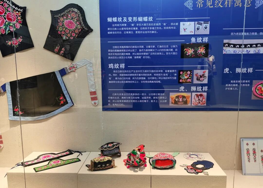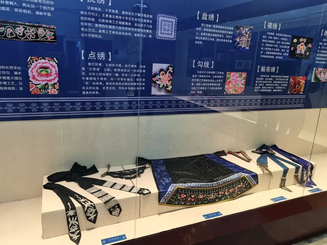 本次展覽分為美麗大理、白族簡介、節(jié)慶大理、白族服飾、白族刺繡、大理扎染工藝六個篇章,展出白族服飾和繡件飾品共83件(套),集中展示了白族文化的多元性以及白族服飾的藝術(shù)之美。