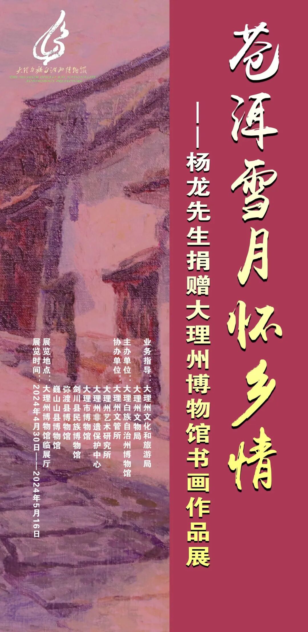 展覽名稱(chēng):蒼洱雪月懷鄉(xiāng)情——楊龍先生捐贈(zèng)大理州博物館書(shū)畫(huà)作品展