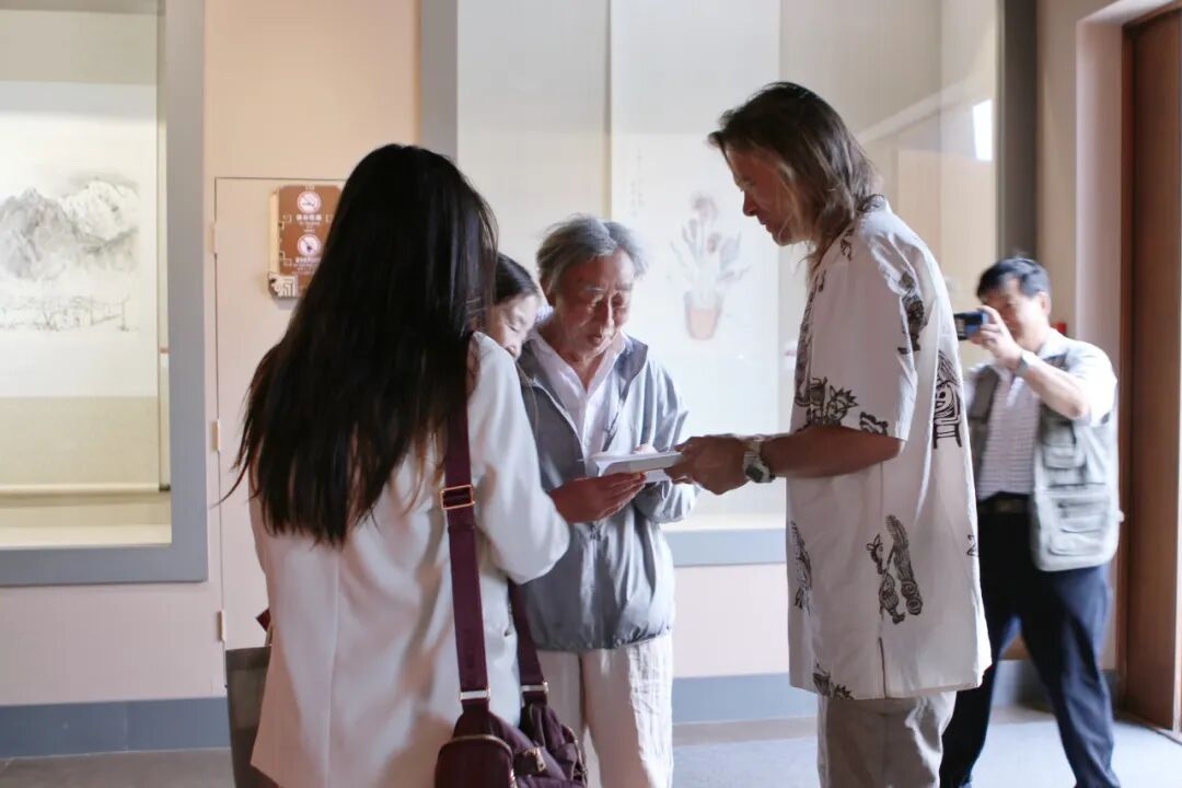 ▲大理州博物館黨支部書(shū)記楊麗萍接受作品捐贈(zèng)