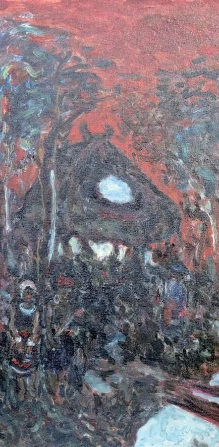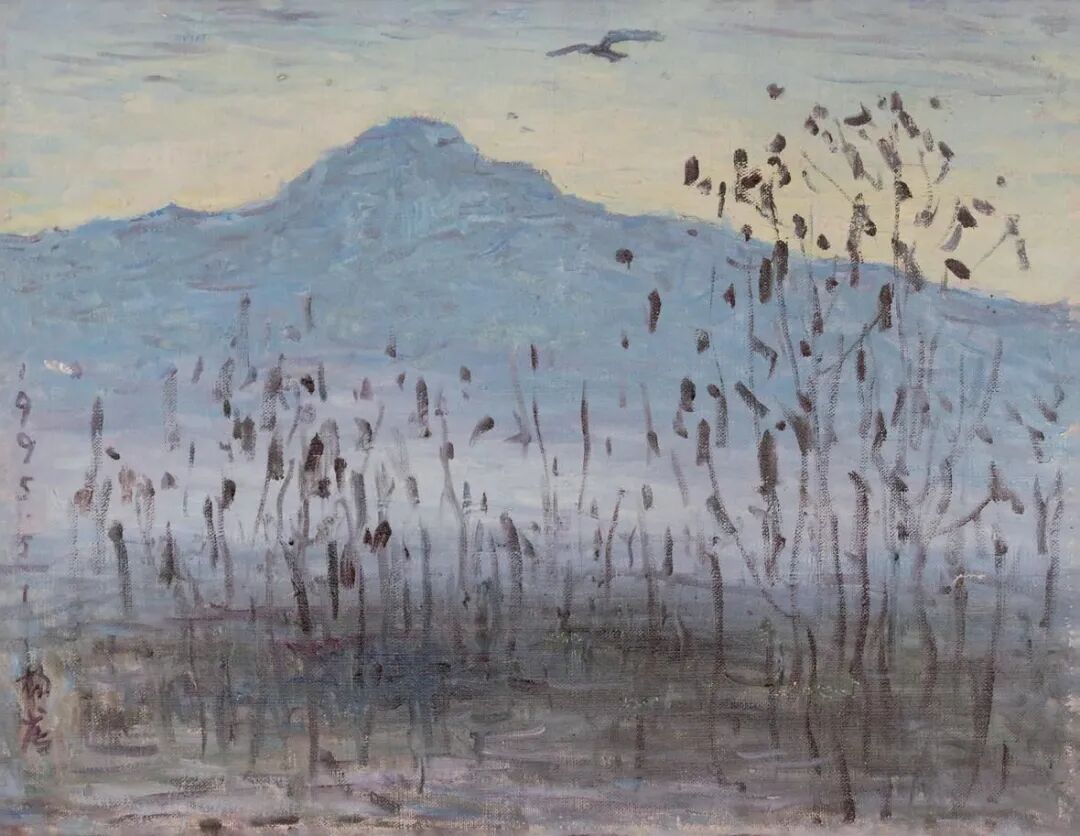 韋羲畫(huà)家的點(diǎn)評(píng)摘錄,回望來(lái)路,方覺(jué)先行者的可貴。在油畫(huà)界回歸“山水精神”,呼吁“中國(guó)學(xué)派”之前,楊龍?jiān)缫雅c“東方山水”“人間草木”神遇而跡化,寂寞行路此間。楊龍風(fēng)格的形成,不為“油畫(huà)民族化”,而是天性使然,是東方書(shū)寫(xiě)精神與西方現(xiàn)代主義發(fā)生在他身上的一場(chǎng)相遇。所謂方向,所謂道路,無(wú)非真摯而已。因?yàn)檎妫?tīng)到山水草木中的水墨召喚、漢語(yǔ)聲音,率性而尋之,獨(dú)立在時(shí)代潮流之外。難能而可貴的是,這水墨之味、漢語(yǔ)之聲竟流通他的手筆,傳遞到異質(zhì)的油畫(huà)里。
