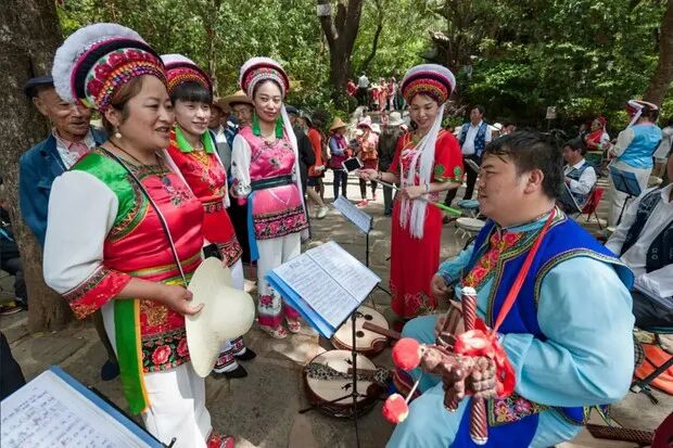 活動當(dāng)天,有來自仁和村、上關(guān)鎮(zhèn)等周邊村鎮(zhèn)洞經(jīng)音樂隊、蓮池會到蝴蝶泉邊演奏,奏響非遺,奏響蝴蝶盛會。