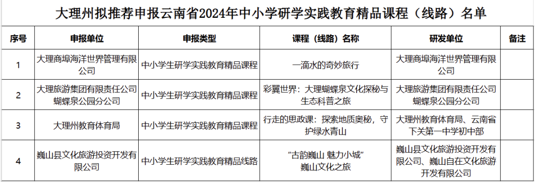 2.附件2 大理州擬推薦申報云南省2024年中小學研學實踐教育精品課程(線路)名單
