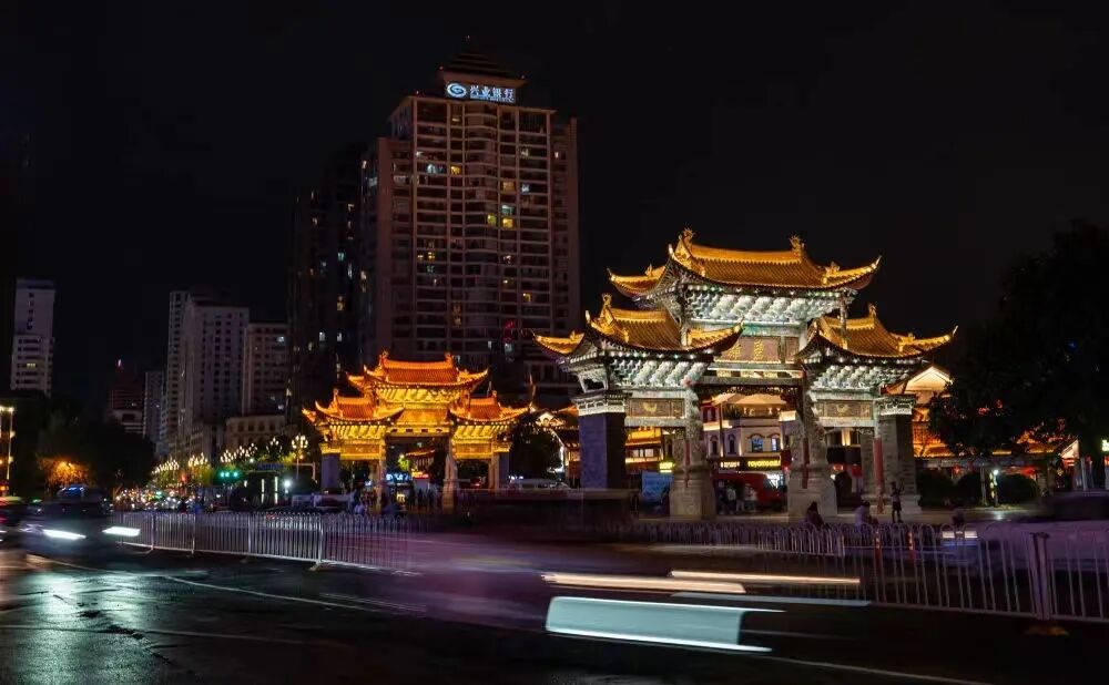 位于昆明市中心的金馬碧雞坊夜景 新華社記者 江文耀 攝