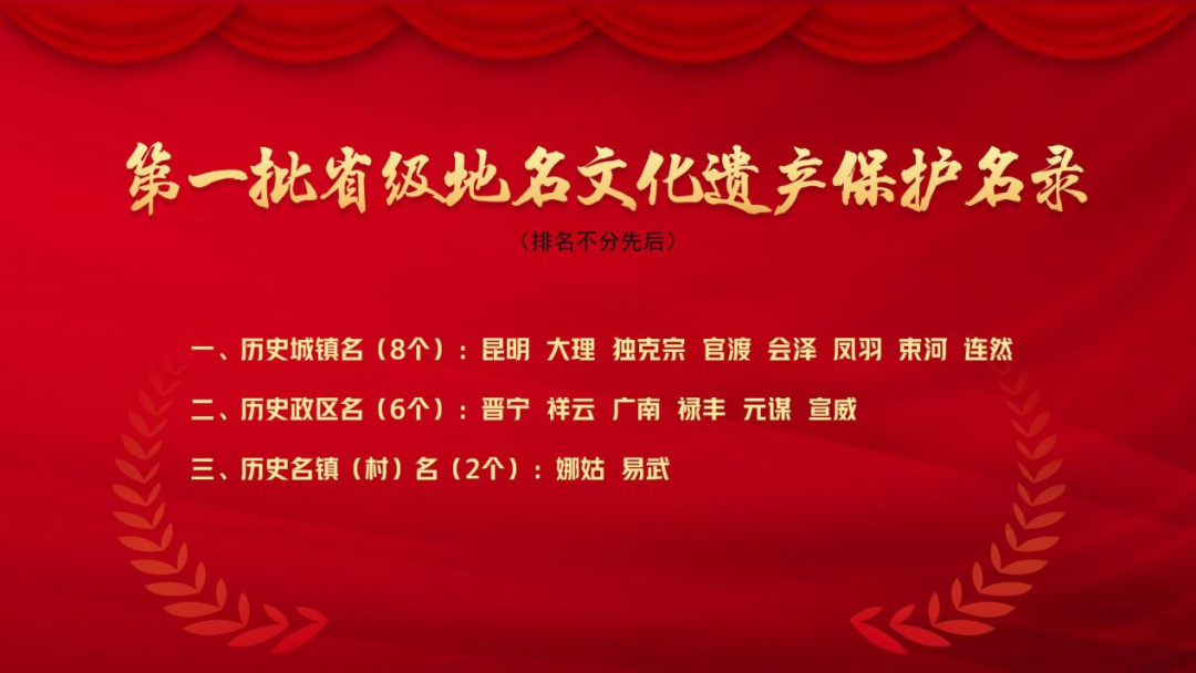 云南省第一批省級地名文化遺產(chǎn)保護(hù)名錄