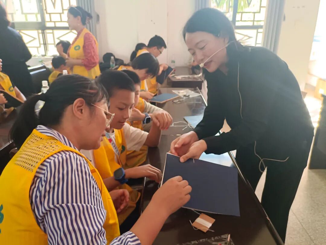 最后一站是巍山縣圖書館。親子家庭興致勃勃地參觀了古籍室,探尋古籍的奧秘,邊觀看珍藏的古籍邊好奇地提出了一些有趣的問題。最讓大家開心的要數(shù)現(xiàn)場學(xué)習(xí)古籍線裝書的裝訂。巍山縣圖書館館長陳春艷詳細(xì)地介紹了館藏古籍,生動形象地講授了古籍的相關(guān)知識,展示多種古籍裝幀形式,教授線裝書的裝訂方法和步驟。孩子們對線裝書表現(xiàn)出濃厚的興趣,他們認(rèn)真地聽,高興地親自動手實踐,在輕松愉快的環(huán)境中學(xué)會了裝訂線裝書,感受到了古籍裝幀的匠心獨運和中華優(yōu)秀傳統(tǒng)文化的獨特韻味,內(nèi)心充滿了喜悅和自豪,從中也了解到現(xiàn)代圖書館對古籍保護(hù)的不懈努力。在動手實踐環(huán)節(jié),陳館長邊講解邊示范,對各親子家庭進(jìn)行了耐心細(xì)致的指導(dǎo)。