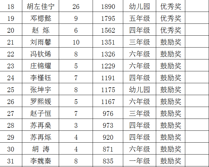 活動(dòng)期間,很多親子家庭積極到圖書館報(bào)名、辦理借閱證、借閱書籍,圖書館里人來人往,呈現(xiàn)出熱鬧的景象。除了圖書館總館,到總館自助書房、蒙化書房和微型圖書館借閱書籍的人也絡(luò)繹不絕,掀起了一陣閱讀的高潮。此次親子閱讀活動(dòng)參加的家庭多,閱讀質(zhì)量高,效果好,共閱讀了468冊(cè)書籍,總計(jì)88656頁,豐富了孩子的課外閱讀,達(dá)到了活動(dòng)的預(yù)期效果。圖書館根據(jù)后臺(tái)數(shù)據(jù)評(píng)選出了31個(gè)“閱讀之星”,其中一等獎(jiǎng)2名、二等獎(jiǎng)3名、三等獎(jiǎng)5名、優(yōu)秀獎(jiǎng)10名,鼓勵(lì)獎(jiǎng)11名。圖書館將在中秋節(jié)活動(dòng)期間為獲獎(jiǎng)家庭頒發(fā)獎(jiǎng)狀及獎(jiǎng)品。