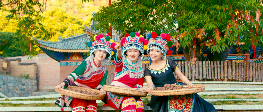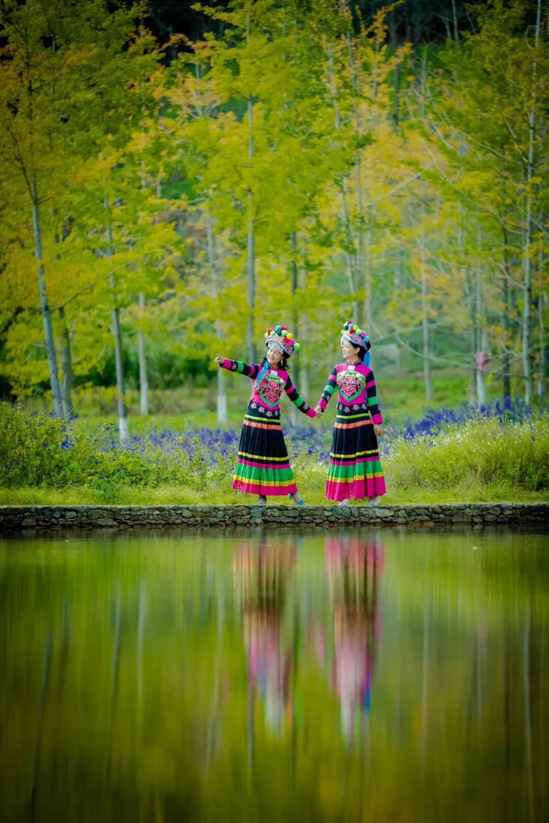 彝族阿表哥阿表妹在映花潭區(qū)域整點(diǎn)進(jìn)行迎賓儀式。(14點(diǎn)截止)