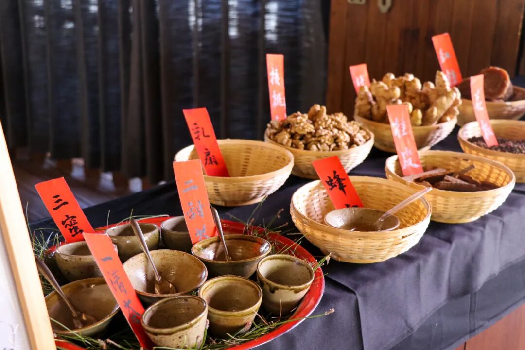 在水上森林商鋪區(qū)域進(jìn)行核桃茶加工及制作,供過(guò)路游客品嘗。