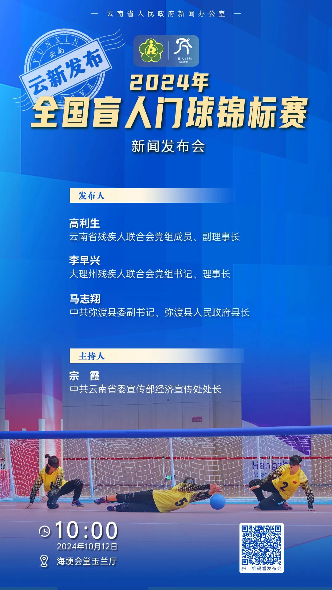 10月12日上午,云南省人民政府新聞辦公室在云南海埂會堂舉行2024年全國盲人門球錦標(biāo)賽新聞發(fā)布會,介紹相關(guān)情況并回答記者提問。