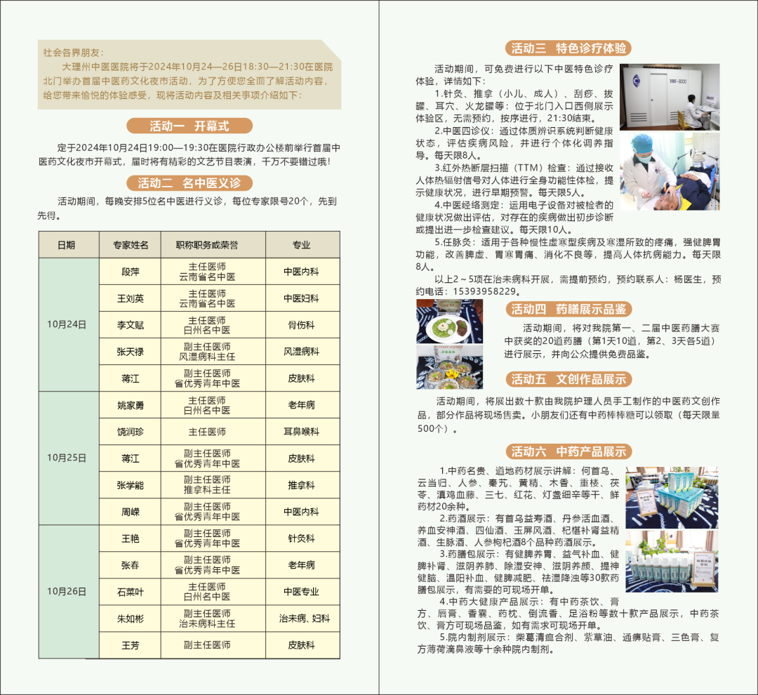 大理州中醫(yī)醫(yī)院首屆中醫(yī)藥文化夜市活動(dòng)手冊(cè)