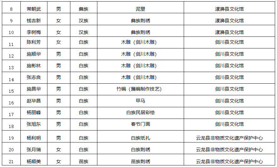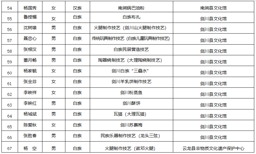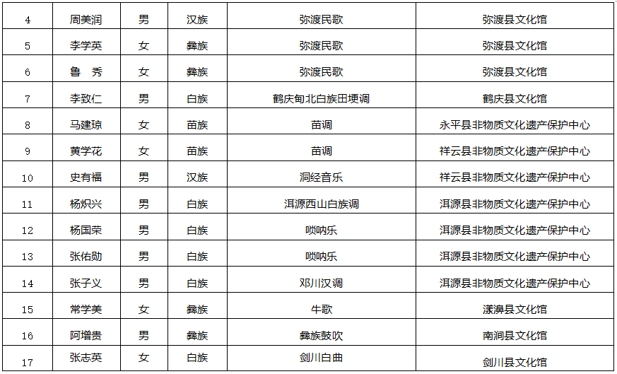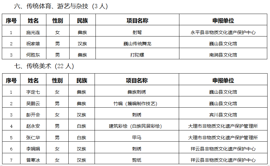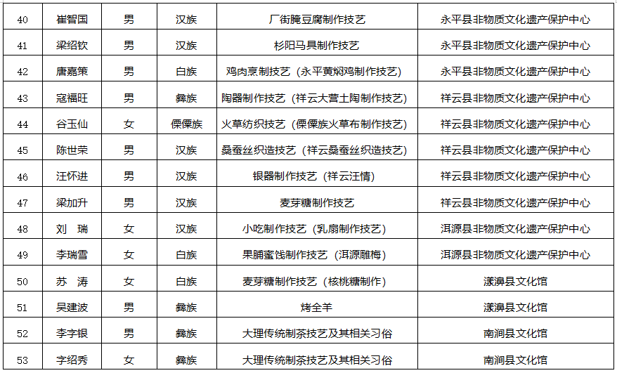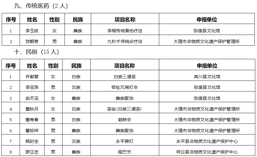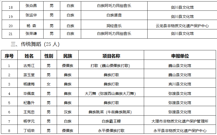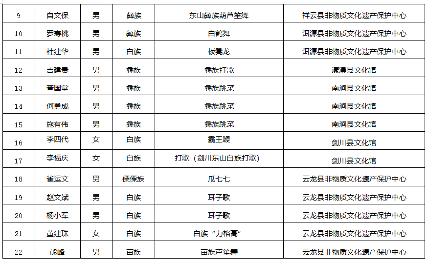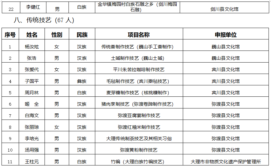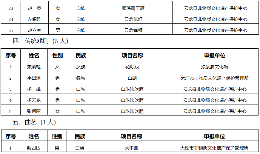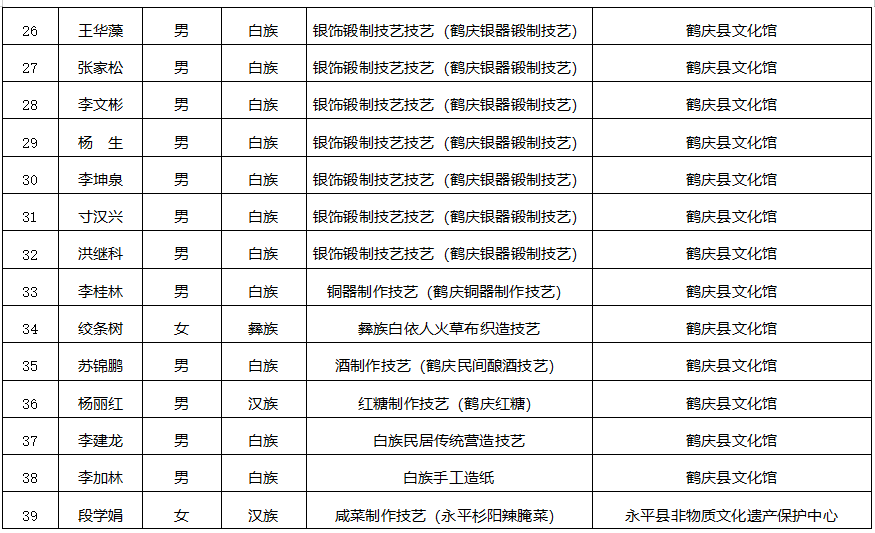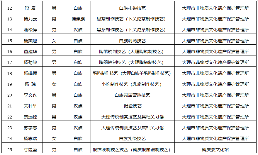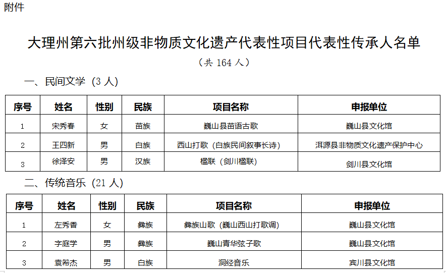 附件:大理州第六批州級非物質(zhì)文化遺產(chǎn)代表性項目代表性傳承人名單
