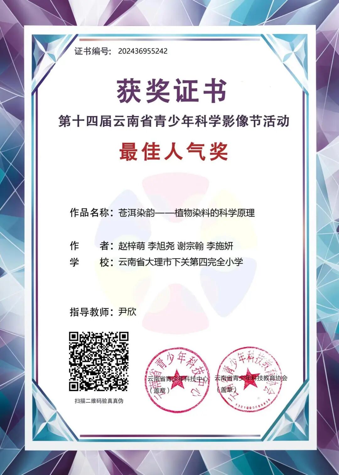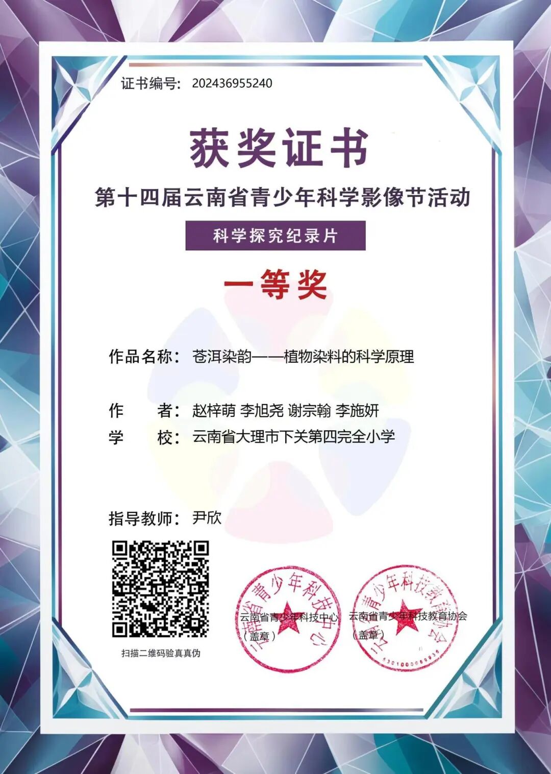 本次下關(guān)第四完全小學(xué)學(xué)生們參賽的作品名為《蒼洱染韻——植物染料的科學(xué)原理》,以“扎染的染料是如何誕生的”為主要科普內(nèi)容,由四位學(xué)生代表組成團(tuán)隊(duì)參賽。此前,該作品在第十四屆云南省青少年科學(xué)影像節(jié)活動(dòng)取得了“最佳人氣獎(jiǎng)”和“科學(xué)探究紀(jì)錄片一等獎(jiǎng)”的優(yōu)異成績,并由云南省推薦至北京參加第十四屆全國青少年科學(xué)影像節(jié)展映展評(píng)活動(dòng),最終在全國兩百多件參賽作品中脫穎而出,取得了“科學(xué)探究紀(jì)錄片優(yōu)秀作品”的好成績,也是大理州唯一進(jìn)入該輪比賽的作品。此次參展,是下關(guān)第四完全小學(xué)將科普教育與學(xué)校長期開展的“非遺進(jìn)校園”活動(dòng)進(jìn)行有機(jī)結(jié)合的具體表現(xiàn),通過對(duì)民族非遺傳承技藝的探究性科普活動(dòng),培養(yǎng)了學(xué)生的科創(chuàng)精神、探究實(shí)踐能力以及對(duì)白族非遺的熱愛、保護(hù)和傳承。