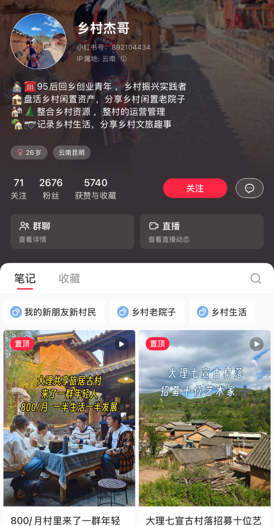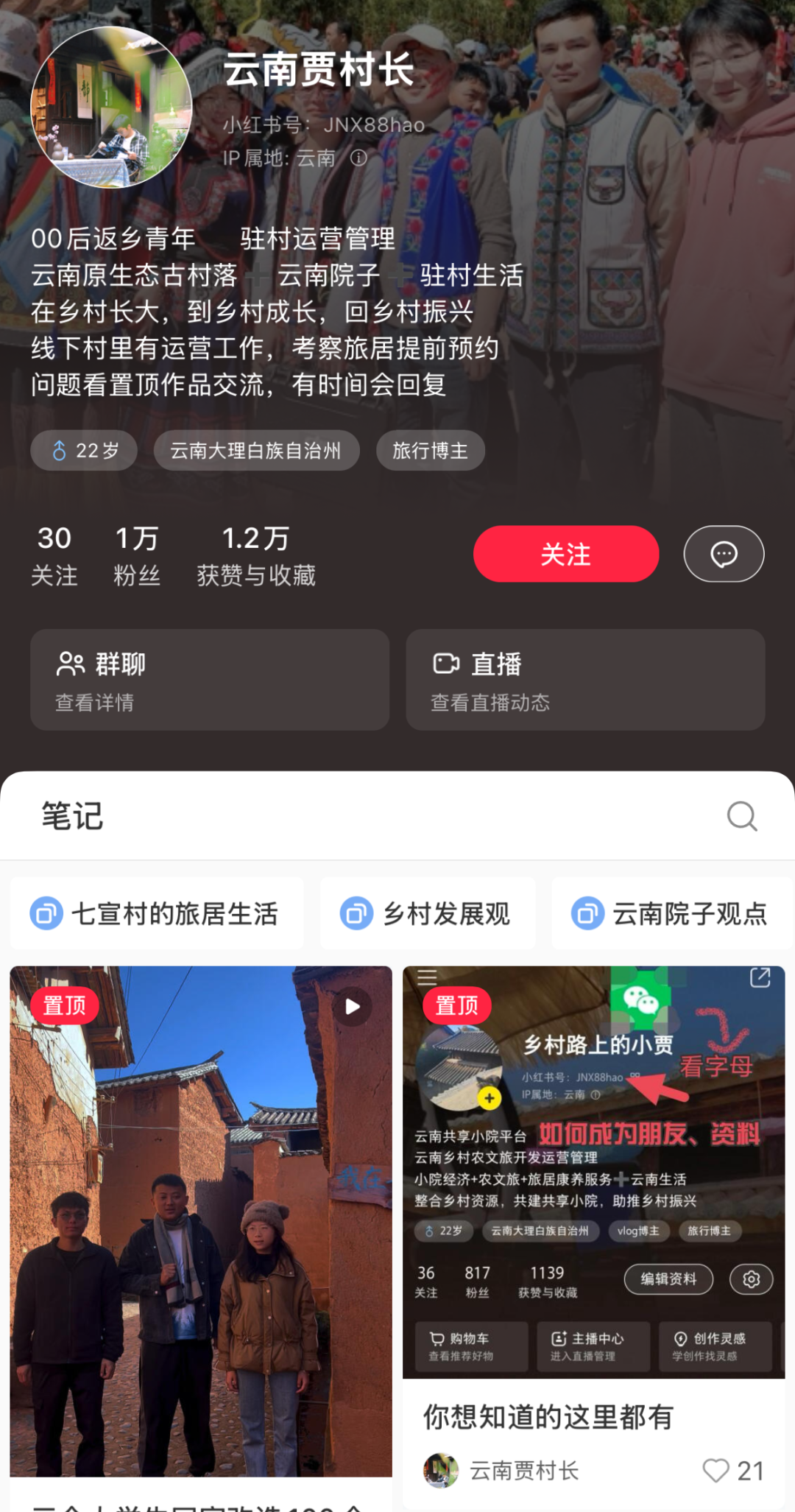 在打造小院新業(yè)態(tài)的同時(shí),趙勇志帶領(lǐng)團(tuán)隊(duì)伙伴充分運(yùn)用微信公眾號(hào)、視頻號(hào)、小紅書(shū)、抖音等媒體平臺(tái),創(chuàng)立了“白家小農(nóng)”“云南賈村長(zhǎng)”“鄉(xiāng)村杰哥”等媒體賬號(hào),通過(guò)日更的形式,對(duì)七宣村的環(huán)境、生活、文化等進(jìn)行宣傳,每天總播放量可達(dá)5萬(wàn),后臺(tái)能收到150多條私信。不少省內(nèi)外游客及一批藝術(shù)家、創(chuàng)業(yè)者慕名前來(lái)旅游旅居、考察投資、采風(fēng)創(chuàng)作,視頻流量轉(zhuǎn)化為了鄉(xiāng)村“留”量。
