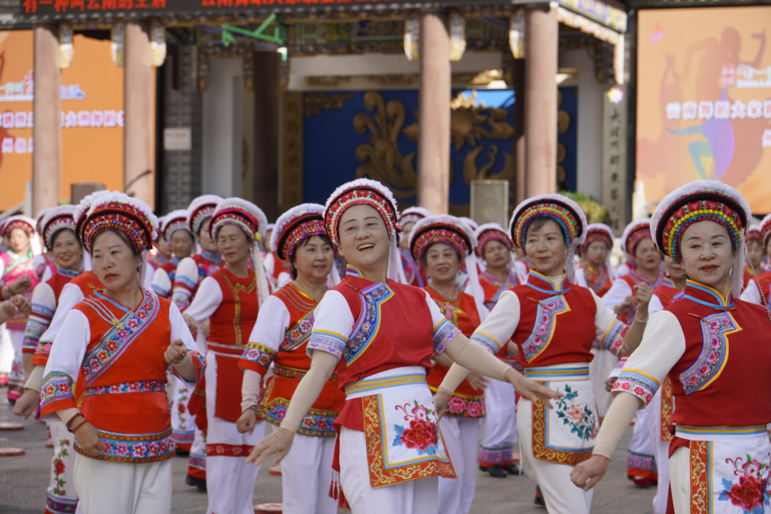 展演活動(dòng)在經(jīng)典白族歌舞《一年一度三月街》的舞步中熱鬧開(kāi)場(chǎng)。