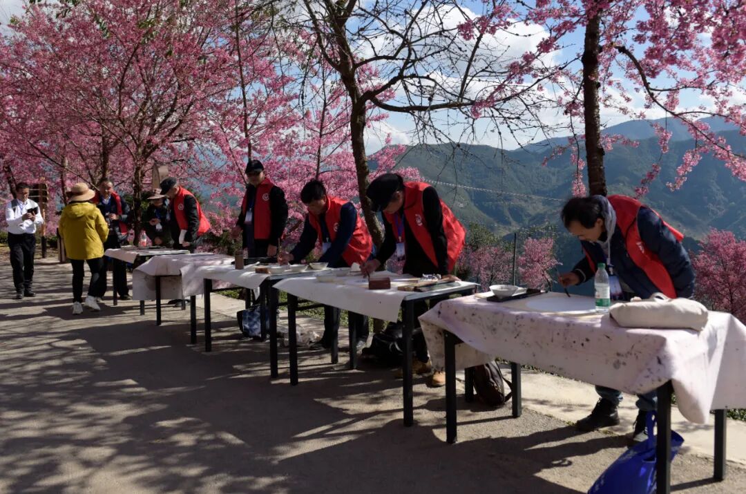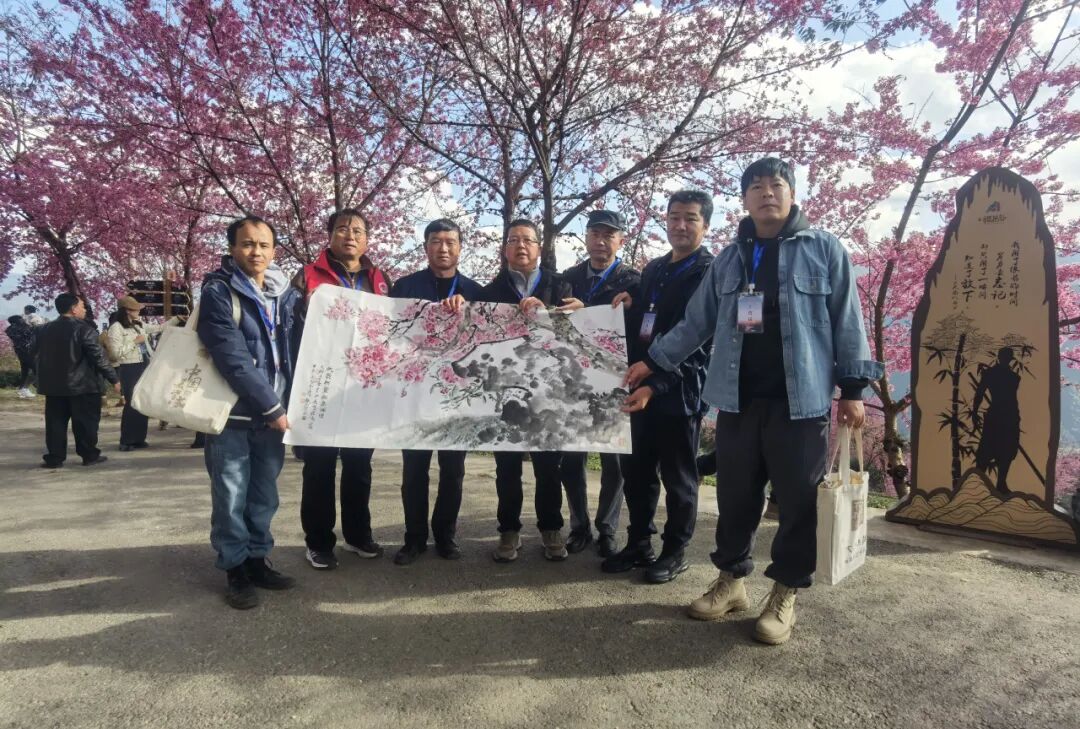 在活動(dòng)中,藝術(shù)家們深入櫻花谷,感受著冬日的氣息和櫻花的芬芳。他們或駐足拍攝,或揮毫潑墨,或低聲吟誦,用各自的方式記錄下這美麗的瞬間。一場書畫創(chuàng)作活動(dòng)在盛放的櫻花樹下展開,活動(dòng)現(xiàn)場氣氛熱鬧非凡,藝術(shù)氣息濃郁。此次活動(dòng)創(chuàng)作的40余幅書畫作品,全部捐贈(zèng)給南澗縣,攝影作品交由縣里留存使用,隨后創(chuàng)作的文學(xué)作品,將在相關(guān)平臺(tái)陸續(xù)刊發(fā)。