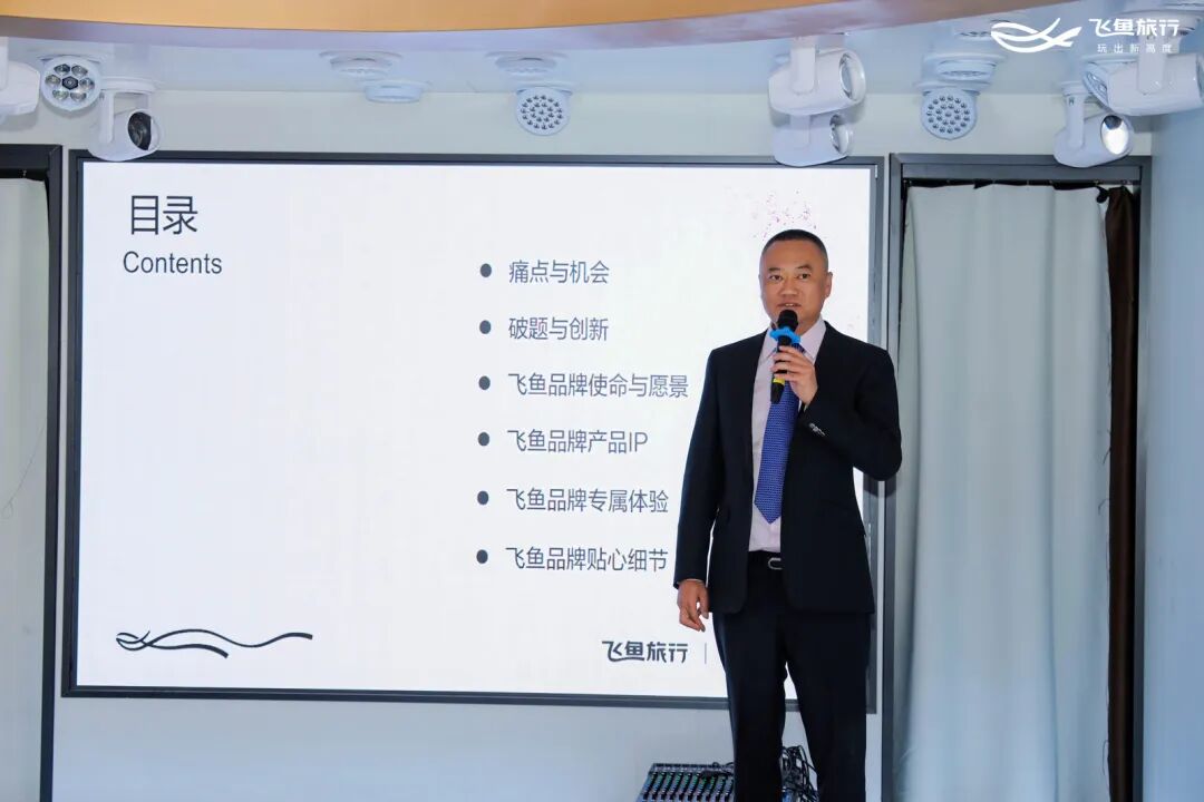 天循旅游集團董事長柴杰對飛魚旅行品牌新時代跟團游的新方向、新理念、新產(chǎn)品做了詳細介紹,強調了創(chuàng)新對于提升用戶體驗的重要性,并展望了未來旅游業(yè)的發(fā)展趨勢。特別是針對消費者的需求變化,提出了多項創(chuàng)新性的解決方案,包括但不限于飛魚品牌專屬體驗、品牌貼心細節(jié)、個性化定制行程等服務。