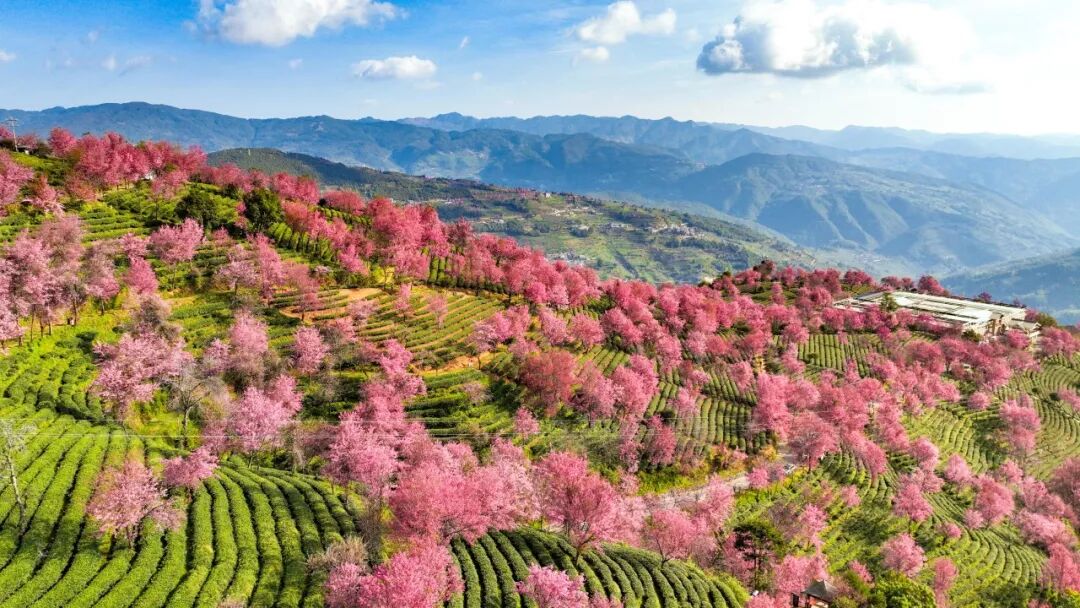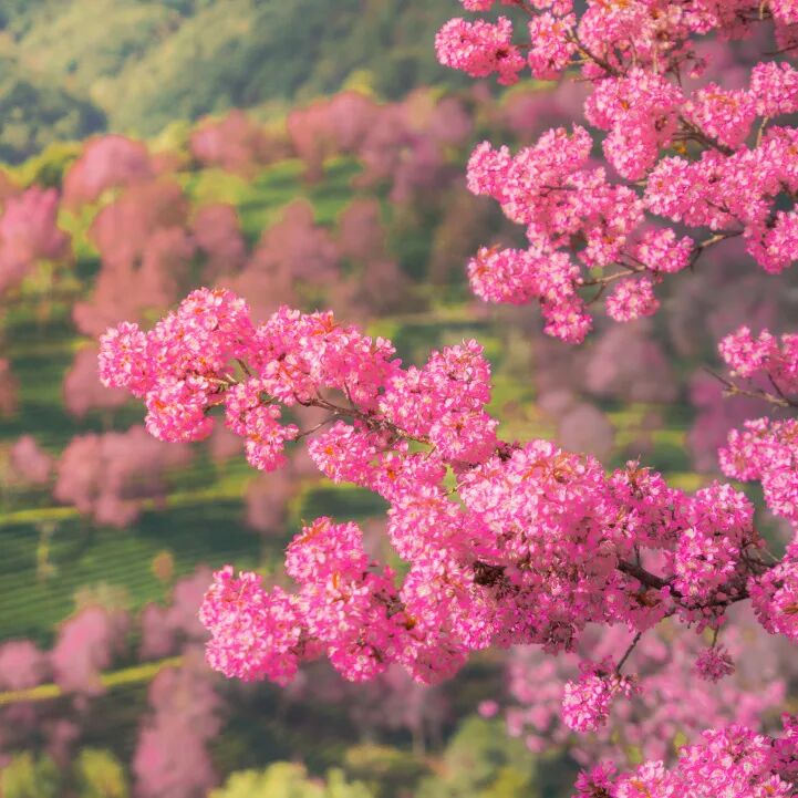 無量山漫天的櫻花映襯著瀾滄江的壯闊