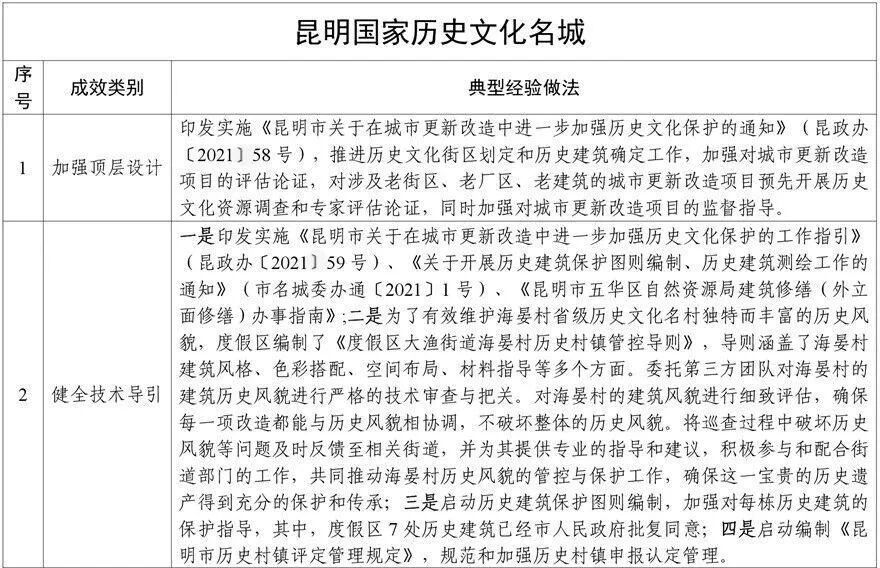 為貫徹落實黨中央、國務院關于歷史文化保護傳承的決策部署,云南省住房和城鄉(xiāng)建設廳依托2024年度國家歷史文化名城專項評估工作,總結了昆明、大理、麗江、建水、巍山、會澤、通海、劍川8座國家歷史文化名城保護利用工作中關于完善頂層設計、加強普查認定、健全監(jiān)督機制、提升人居環(huán)境、開展活化利用等方面的典型經(jīng)驗做法,形成《云南省8座國家歷史文化名城保護利用可復制經(jīng)驗做法清單》。