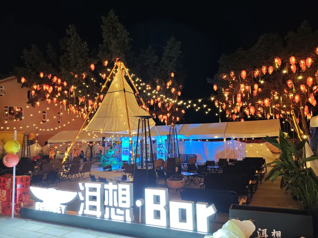 當夕陽的余暉漸漸隱去,燈籠高掛,集市被點亮,愛心裝飾燈光更顯溫馨浪漫。燈光璀璨,如同點點星光落入凡間,照亮每一對戀人的笑顏。