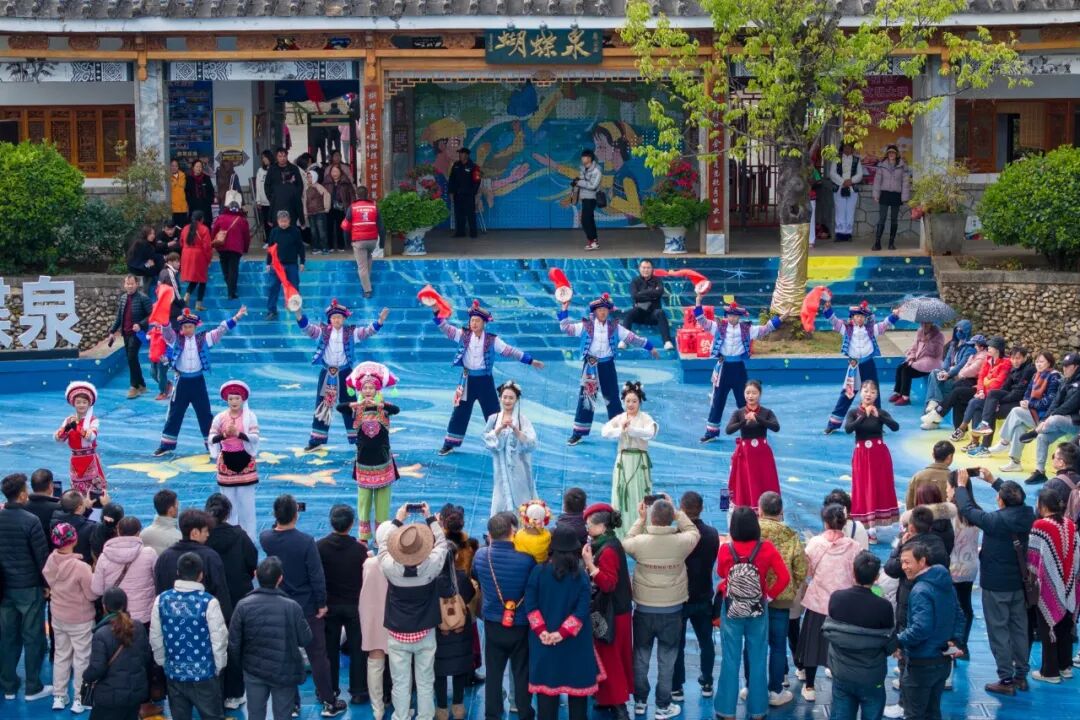 春節(jié)期間,大理青山村民俗活動(dòng)精彩上演,劍川新春非遺集市人氣旺,云龍“白族吹吹腔”演出賀新春,洱源“梅好喜市”非遺市集熱鬧開(kāi)市。