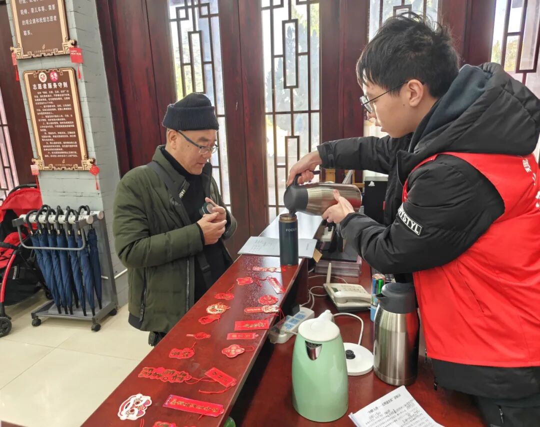 大理州博物館招募的志愿者在春節(jié)期間堅(jiān)守崗位,他們?yōu)橛慰吞峁┲驹钢v解介紹大理歷史文化,在志愿服務(wù)中心開展贈(zèng)送年歷、春節(jié)掛件等活動(dòng),為有需要的游客提供輪椅、熱水、創(chuàng)可貼、藥品等便民服務(wù),他們身穿紅馬甲,為游客指路、發(fā)放宣傳冊(cè),穿梭于展廳之間,點(diǎn)亮了博物館的溫暖年味,也為春節(jié)活動(dòng)增添了一抹靚麗的“志愿紅”。