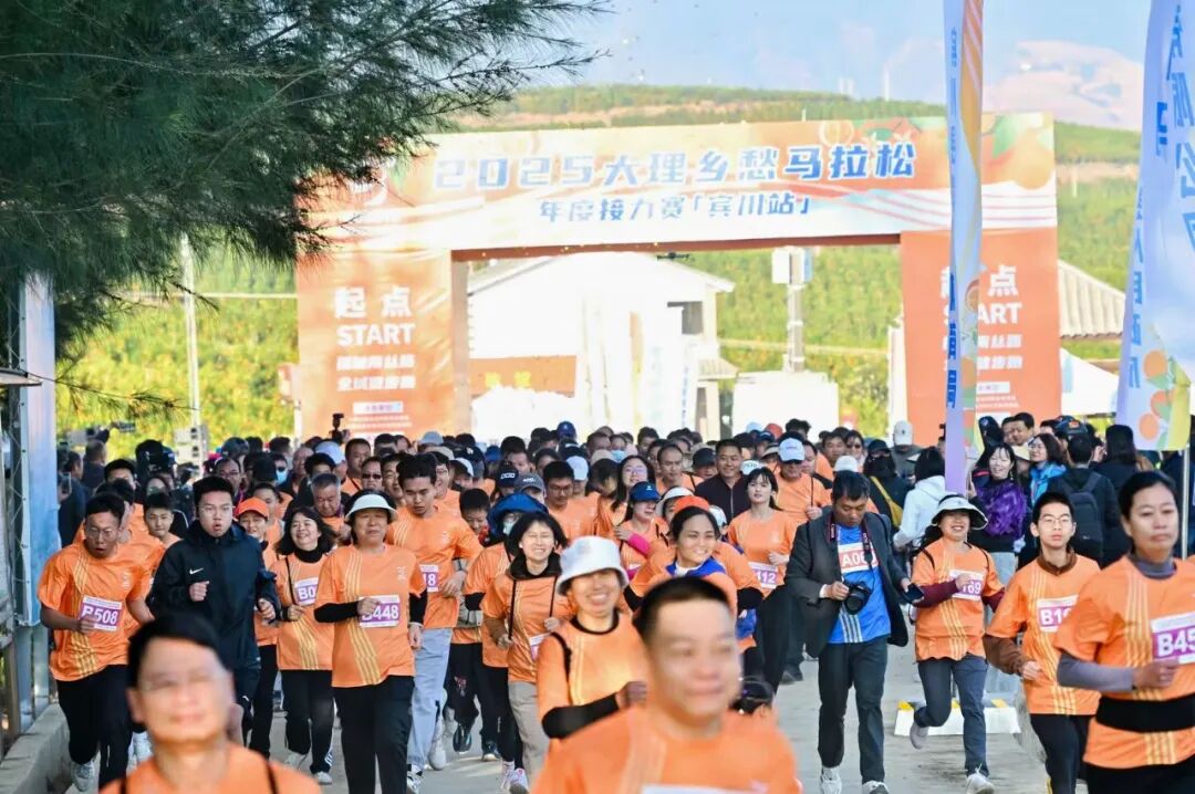 2月23日,“探秘南絲路 全域健步跑”2025大理鄉(xiāng)愁馬拉松年度接力賽(賓川站)在賓川縣小河底萬畝柑桔示范園“甜蜜”開跑。