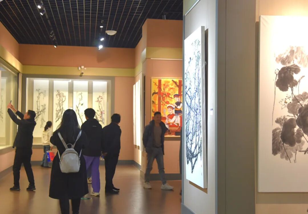 開展當日,展廳內人潮涌動,現場參觀觀眾絡繹不絕。觀眾們簇擁在畫作前,駐足屏息,凝神觀賞,不時與身旁的友人低聲熱議,分享著對作品的深刻感悟。人群中不時傳來陣陣贊美聲,紛紛被這些畫作的獨特魅力深深折服。
