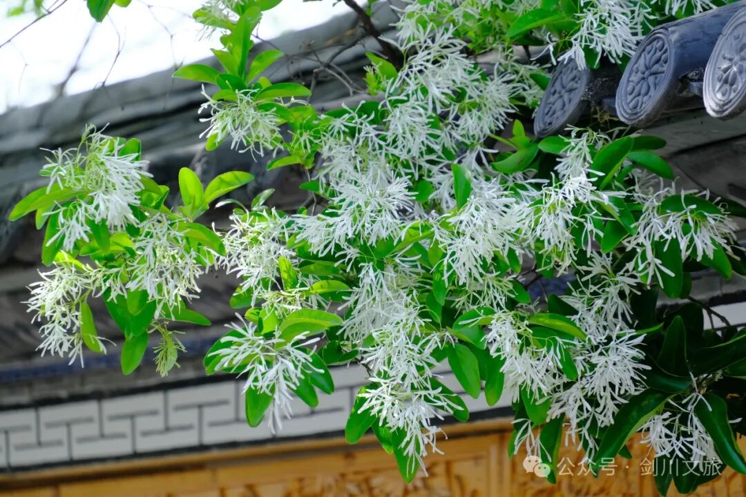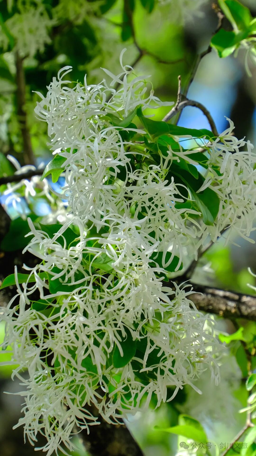 近看流蘇花,花形如金銀花般精致,卻獨獨沒有花蕊,細長的花瓣相互交織,如面條般垂掛在枝頭,在劍川白族話里,它被稱作“古魯花” ,這質(zhì)樸的名字里,藏著當(dāng)?shù)厝藢λ钣H切的喜愛。再瞧那含苞待放的小花,小巧玲瓏,外形、大小和顏色皆與糯米極為相似,讓人忍不住想去觸摸。據(jù)說,這花和嫩葉還能泡茶,名為糯米茶,想象著在一個慵懶的午后,泡上一杯流蘇茶,靜享那份獨屬于春日的悠然,該是何等愜意。