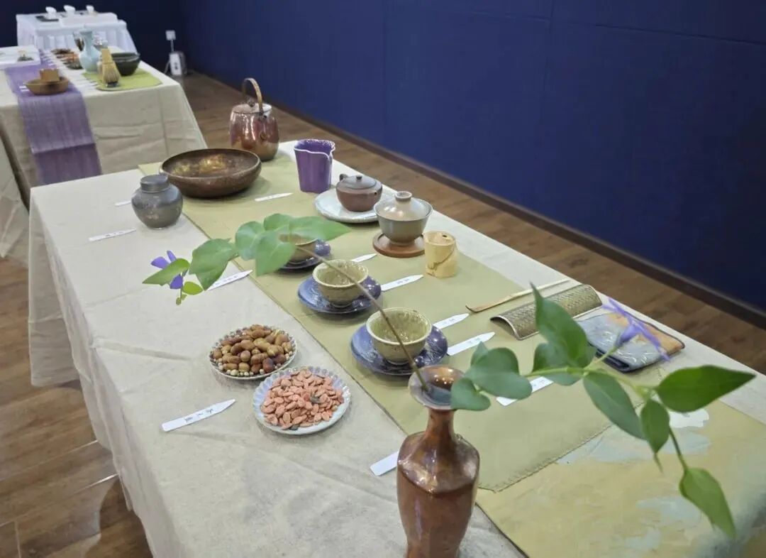 同學(xué)們?cè)谡箯d參觀(guān)結(jié)束后,特邀主講人帶領(lǐng)大家穿越時(shí)空,探尋茶馬古道的千年傳奇,解讀三月街的民俗風(fēng)情,品味茶文化的深厚底蘊(yùn),呼吁大家?guī)е幕瘍?nèi)涵去趕“gai”。主講人通過(guò)對(duì)我國(guó)地形地貌的分析講授,了解我國(guó)茶樹(shù)生長(zhǎng)的條件和分布,進(jìn)一步介紹茶葉的種類(lèi)和各自的特點(diǎn)?,F(xiàn)場(chǎng)還展示了六大茶類(lèi)茶葉樣本和茶湯,以及精美的中國(guó)茶具茶席、宋式點(diǎn)茶茶具,到近距離觀(guān)察茶樣、觸摸茶器,在茶香中感受千年茶馬古道的韻味。
