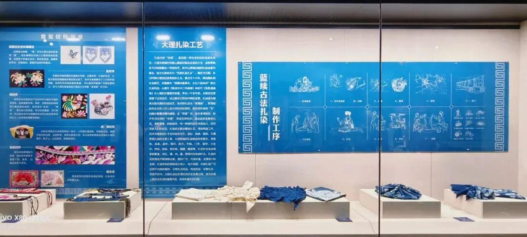 本次展覽分為美麗大理、節(jié)慶大理、白族服飾、白族刺繡、扎染工藝五個篇章,展出白族服飾和繡件飾品共80件(套),其中包括26套州內(nèi)外白族服飾、47件刺繡飾品和7件白族扎染作品,集中展示了大理州內(nèi)的大理市、洱源縣、鶴慶縣、劍川縣、賓川縣、云龍縣等地以及除大理州外各地的白族服飾。