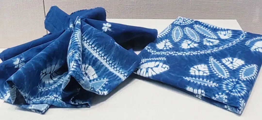大理白族扎染作品由手工針縫線扎?!霸尽鳖櫭剂x,就是將布料以縫扎的方式縫扎成花鳥魚蟲等各種圖案,然后將其放入植物染料熬成的汁水中反復(fù)浸泡染制,待染透后,解去縫扎線腳、放入清水中漂洗,布料上就留下所縫扎的清晰圖案。手工扎花、植物浸染是扎染工藝的根本。大理白族地區(qū)的扎染原料為純白布或棉麻混紡白布,染料為蒼山上生長的蓼藍、板藍根、艾蒿等天然植物的藍靛溶液。