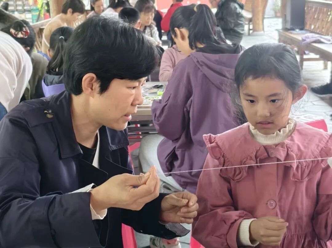 工作人員現(xiàn)場教學(xué),親子協(xié)作將艾葉天然香料裝入刺繡花布,一針一線縫制專屬香囊。成品可作為節(jié)日禮物送給親友,讓傳統(tǒng)文化“戴”在身上,暖在心里。