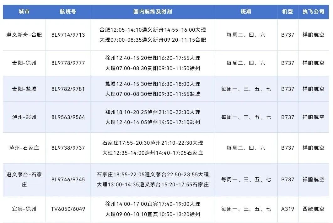 大理=遵義=合肥、大理=貴陽=徐州、大理=貴陽=鹽城、大理=瀘州=鄭州、大理=瀘州=石家莊、大理=遵義茅臺=石家莊、大理=宜賓=徐州